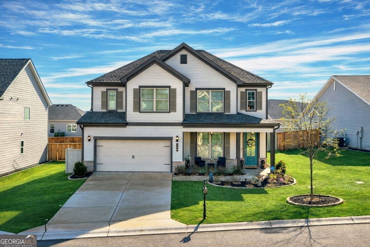 NEW PRICE IMPROVEMENT!!! This Peachwood floorplan features luxury, high-end finishes and is priced far Below the current, new-build price. This gorgeous home located in the prestigious Chimney Oaks Golf Community in Homer, Georgia will check all your boxes -- and then some!! A dramatic two-story foyer welcomes you with a versatile flex room ideal for a media room, home office, den, etc. The open great room and dining area feature soaring vaulted ceilings, creating a bright and inviting space. The kitchen boasts white cabinetry, quartz countertops, stylish backsplash, a large center island, and a pantry -- perfect for everyday living and entertaining. The primary suite is conveniently located on the main level and offers LVP flooring, vaulted ceilings, a walk-in closet, and a spa-like bath with a floor-to-ceiling tiled walk-in shower. A powder room and laundry room complete the main floor. Upstairs, enjoy a spacious loft ideal for a media or recreation room, along with three additional bedrooms and a full bath. All three upper bedrooms and the full bath have been staged but never used and are in brand-new condition. Enjoy a fully-enclosed backyard with privacy fencing -- perfect for entertaining, children, and your pets. Truly this home is suitable for all stages of life. Home is situated perfectly between Gainesville, Commerce and Cornelia with easy access to Ga 365, I-85 and Hwy 441. Bonus: it's just a short drive to the North Georgia Mountains -- Helen, Clayton, Dahlonega. Resort-style living at Chimney Oaks --- Where every day feels like a vacation!