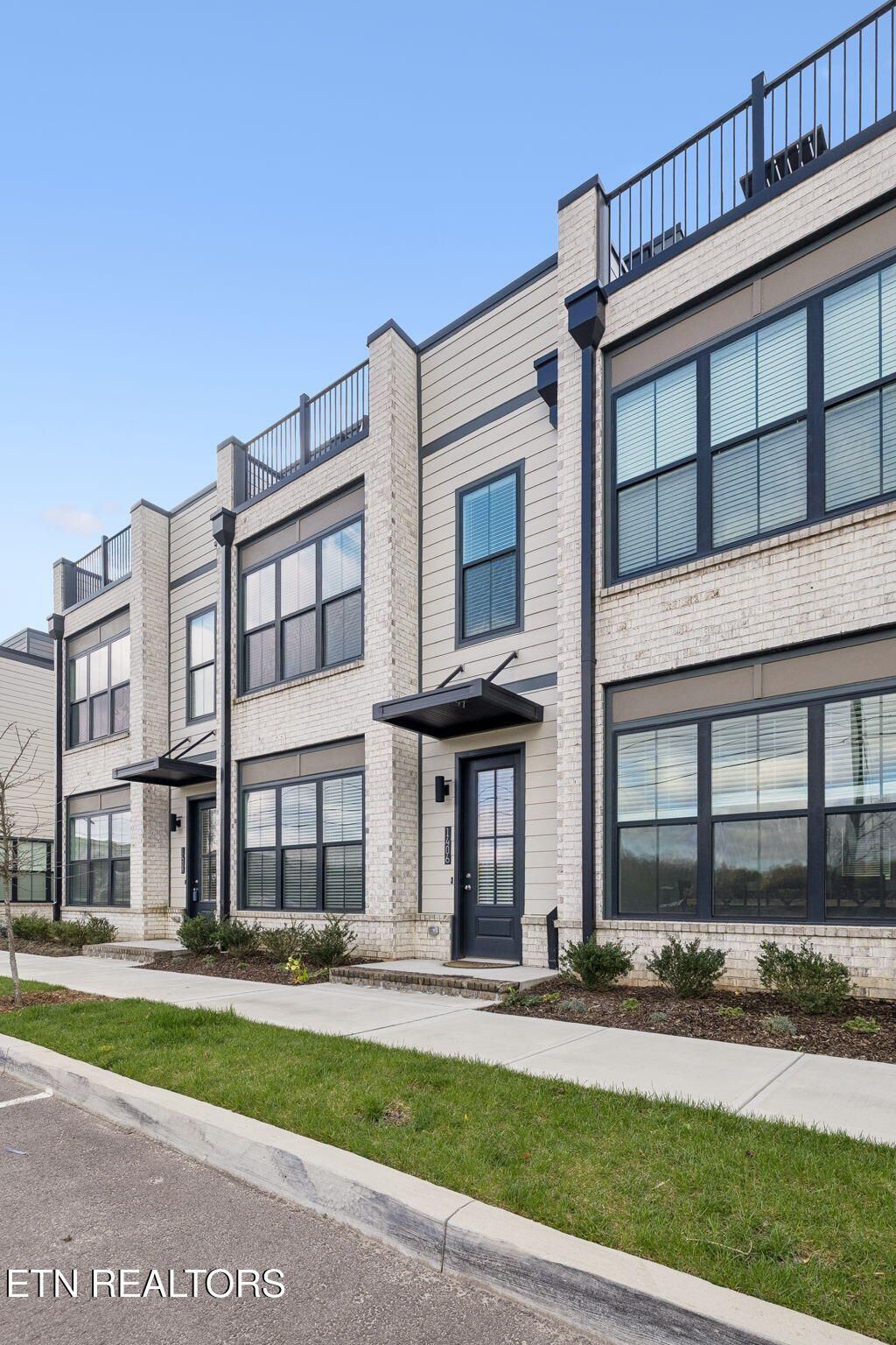 This stylish 3-bedroom, 3-bath townhome offers the perfect blend of modern design, low-maintenance living, and an unbeatable South Knoxville location in the desirable Island Home area. The three-story layout features an open-concept main level with generous living and dining space that flows into a sleek, well-appointed kitchen, creating an ideal setting for everyday living and entertaining. Large windows invite in natural light and capture scenic water views, giving the home a bright, airy feel and a strong connection to the riverfront setting. Upstairs, each of the three full bathrooms is thoughtfully placed to serve the bedrooms and common areas, making the home especially functional for families, guests, or roommates.One of the standout features is the private rooftop deck, offering an elevated outdoor retreat perfect for relaxing, dining, or hosting friends while enjoying views of the water and surrounding neighborhood. This space extends your living area outdoors and makes the most of the home's unique setting near the river. With its newer construction, neutral finishes, and move-in-ready feel, this property is an excellent option for buyers seeking modern comfort and a lock-and-leave lifestyle close to downtown Knoxville, the University of Tennessee, Ijams Nature Center, river access, and nearby greenways.