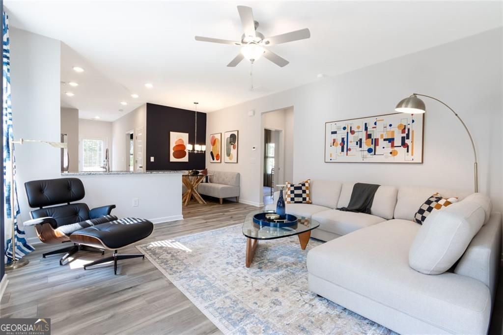 Move-In Ready May! The Ryman in The Andros community by Smith Douglas Homes. This home offers an efficient yet inviting cottage-style layout with a welcoming entry that immediately feels like home. At the heart of the home, a light-filled family room flows seamlessly into a beautifully appointed kitchen featuring granite countertops, upgraded cabinetry, tile backsplash, stainless steel appliances, and generous counter space perfect for both everyday living and entertaining. A stylish linear fireplace anchors the living room, while durable LVP flooring runs throughout the main living areas for both elegance and easy maintenance. Tucked privately at the rear of the home, the spacious primary suite boasts a tray ceiling and ensuite bath with a walkin closet, double bowl vanity, and a tiled walk-in shower. Two additional bedrooms and a full bath provide comfortable accommodations for family, guests, or a home office, while a conveniently located laundry room adds everyday functionality. Step outside to enjoy your morning coffee or evening relaxation on the covered patio overlooking the backyard. Ideally located just minutes from downtown Dalton, top-rated schools, popular restaurants, and local parks, with quick access to I-75 and only 30 minutes to Chattanooga-this home perfectly blends comfort, style, and convenience.