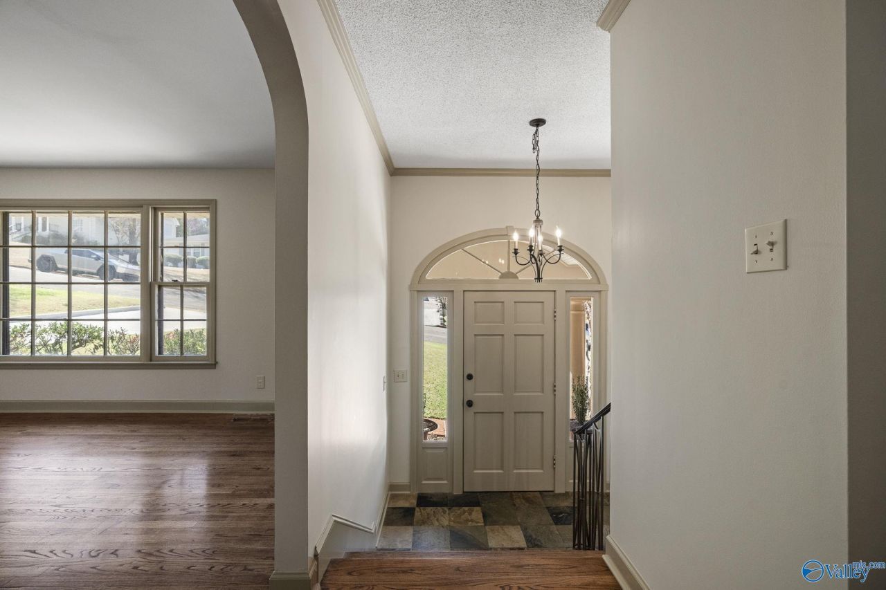 Ready for Summer with private pool, Screened Porch & Large deck! The kitchen opens to the family room with vaulted ceilings. Primary Suite overlooks the pool & has been renovated with Overhead Rain Showerhead & additional jets, heated floors, & secret laundry chute! Kitchen has pull-out shelving, an appliance garage, pantry & pot filler! The central island is the perfect place to gather. The home was fully renovated & expanded in 2006. Roof new in 2024. Hardwood floors or tile throughout home. Detached carport is deep enough to hold sea boat! Multiple parking areas. Easy Access to Huntsville Hospital, Downtown Huntsville or 565. NO HOA!