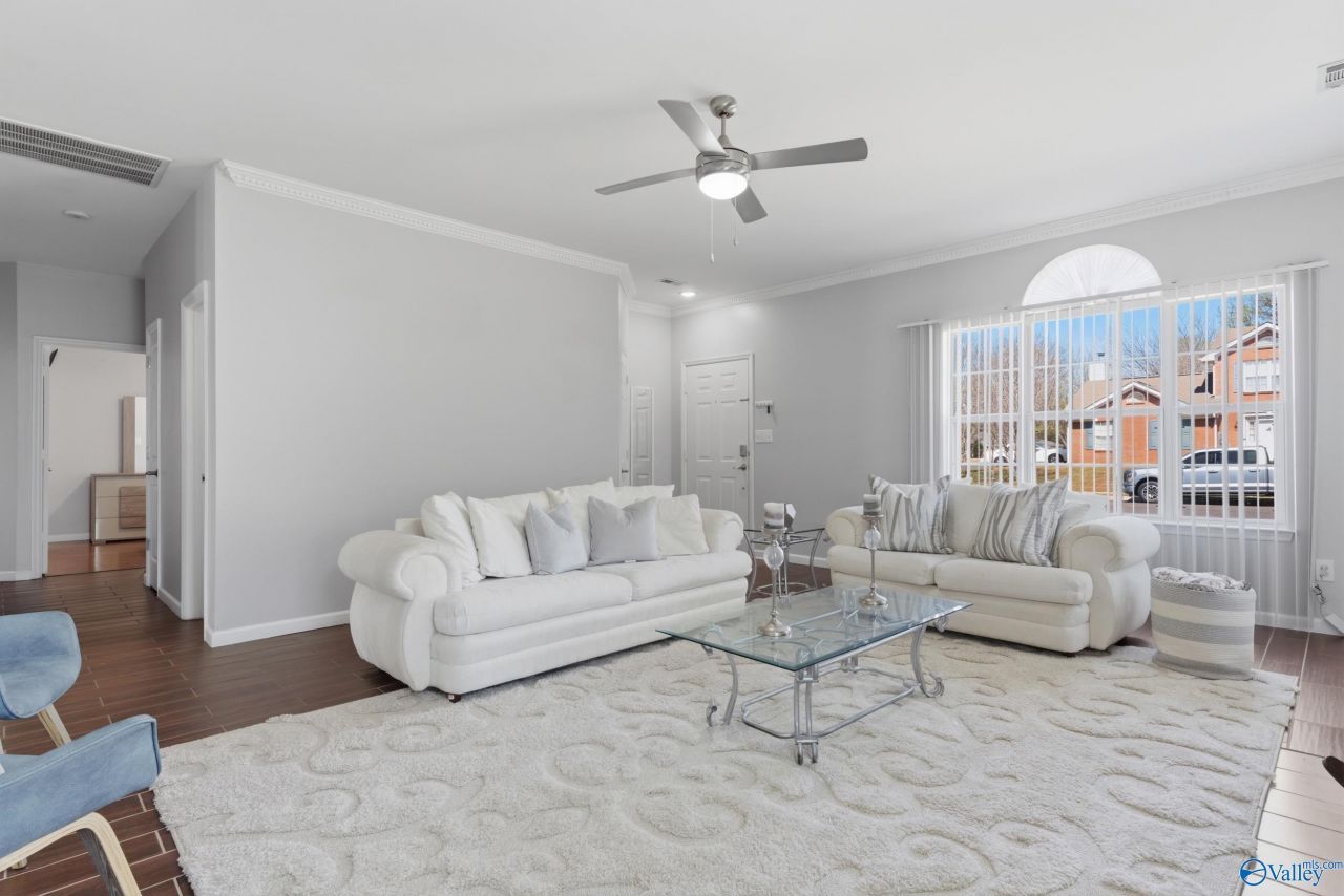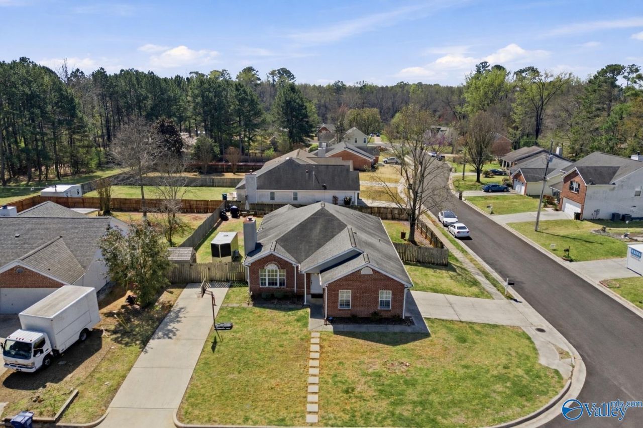 Madison City Schools, one story renovated home features 3 bedrooms, 2 bathrooms, plus an office. Renovated home with flooring throughout no carpet. The flexible office space is perfect for working from home or could be used as a flex room. Situated on a large corner lot, the home includes two driveways, providing ample parking and convenience. Enjoy the spacious, privacy-fenced backyard, ideal for outdoor living, entertaining, or relaxing. A storage shed is also included for added functionality.