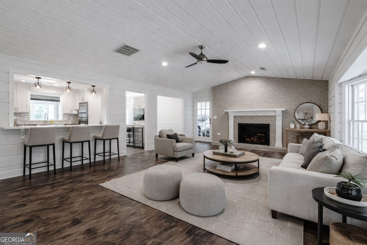 Tucked behind a gated entrance on over five serene acres in Fayetteville, 143 Swanson Road offers rare space and privacy just minutes from the popular restaurants, shops, and entertainment amenities at Trilith. A tree-lined drive sets a peaceful tone, welcoming you into this quiet retreat. The three-bedroom, two-bath home feels connected to the outdoors from every angle. A spacious family room with fireplace creates a cozy gathering place on cool evenings, while the sunroom frames tranquil views of the water year-round. The recently updated kitchen features custom pull-out pantry storage, farmhouse sink, a gas range and additional wall oven; making everyday meals and entertaining equally effortless. Step outside to the expansive newly built deck overlooking the pond-an ideal setting for dining al fresco after afternoons spent in the completely updated pool. The generous acreage offers plenty of room to gather, explore, or simply relax and take in the natural surroundings. A large detached garage and workshop provide exceptional flexibility for hobbyists, craftsmen, or anyone needing dedicated space to build, store, or create. In addition to the attached two-car garage, a newly poured concrete driveway and expansive parking area accommodate guests, recreational vehicles, or additional equipment with ease. With open acreage, water views, and a secure gated entrance, this turn-key property is designed for those who value room to breathe, space to pursue their interests, and the everyday calm of a truly private setting-all while remaining conveniently close to town amenities.