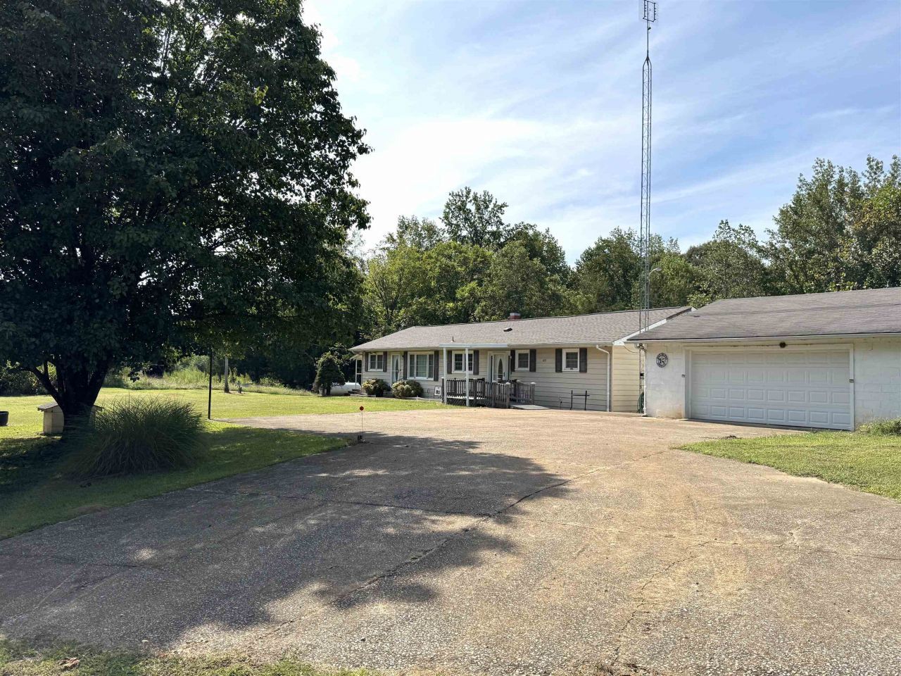 Country estate with lots of potential. This 19+/-ac tract includes a 1716 sq ft house with basement, detached garage/workshop, a 14x48ft mobile home, portable carports, storage buildings, and 4 barns. The land offers over 2500ft of frontage on 2 roads, a small pond, a spring, level to rolling terrain, open pastures, and woods.