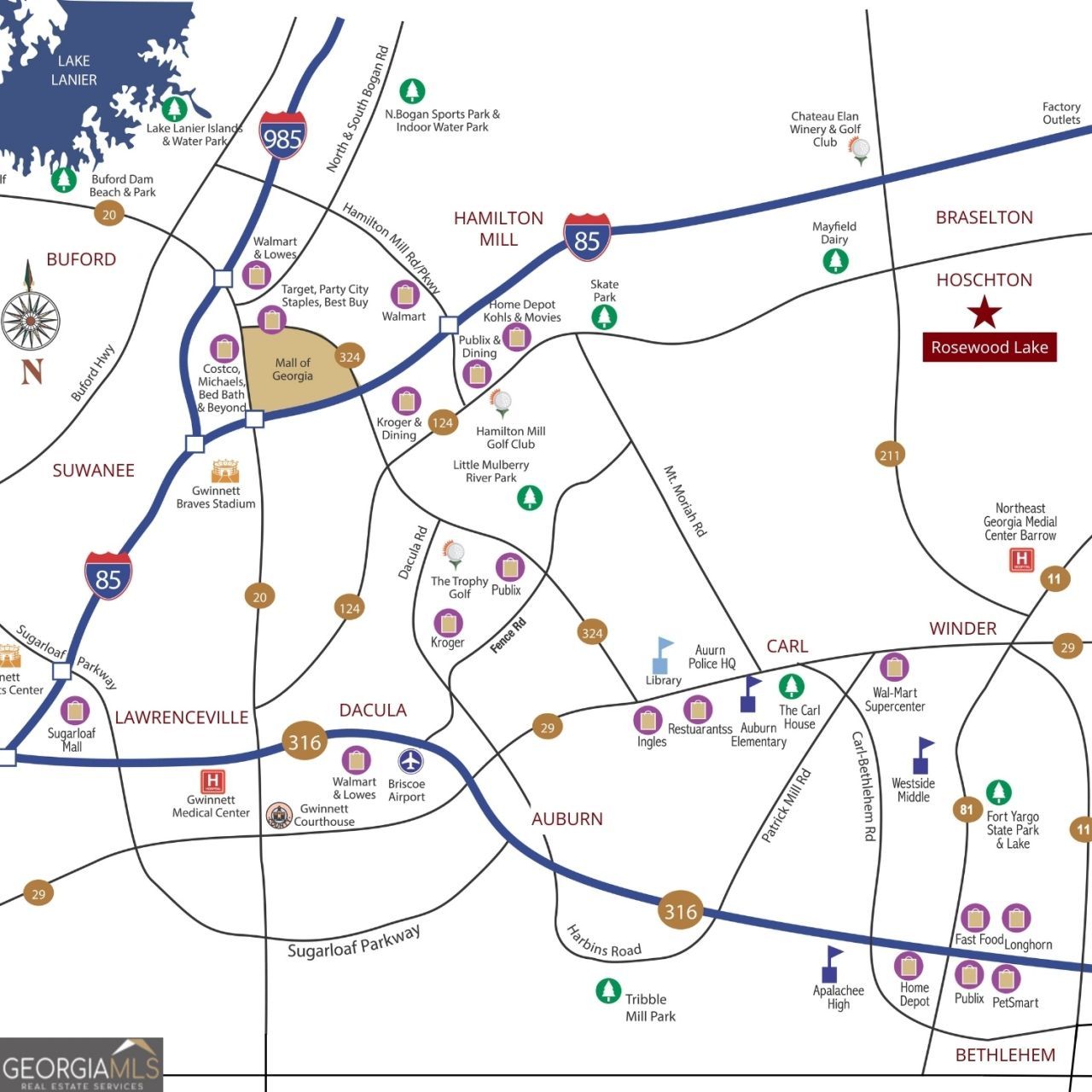 This single family home located at 145 Rose Lake Court, Hoschton, GA 30548 is currently listed for sale with an asking price of $573,221. This property was built in 2026 and has 3 bedrooms and 2 full and 1 partial baths with 1868 sq. ft. Rose Lake Court is located in the Rosewood Lake subdivision. Search Rosewood Lake real estate on online.fusion2b.com today.
