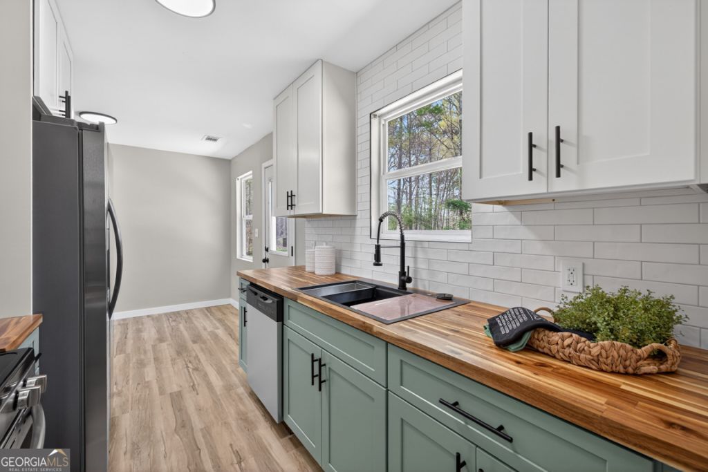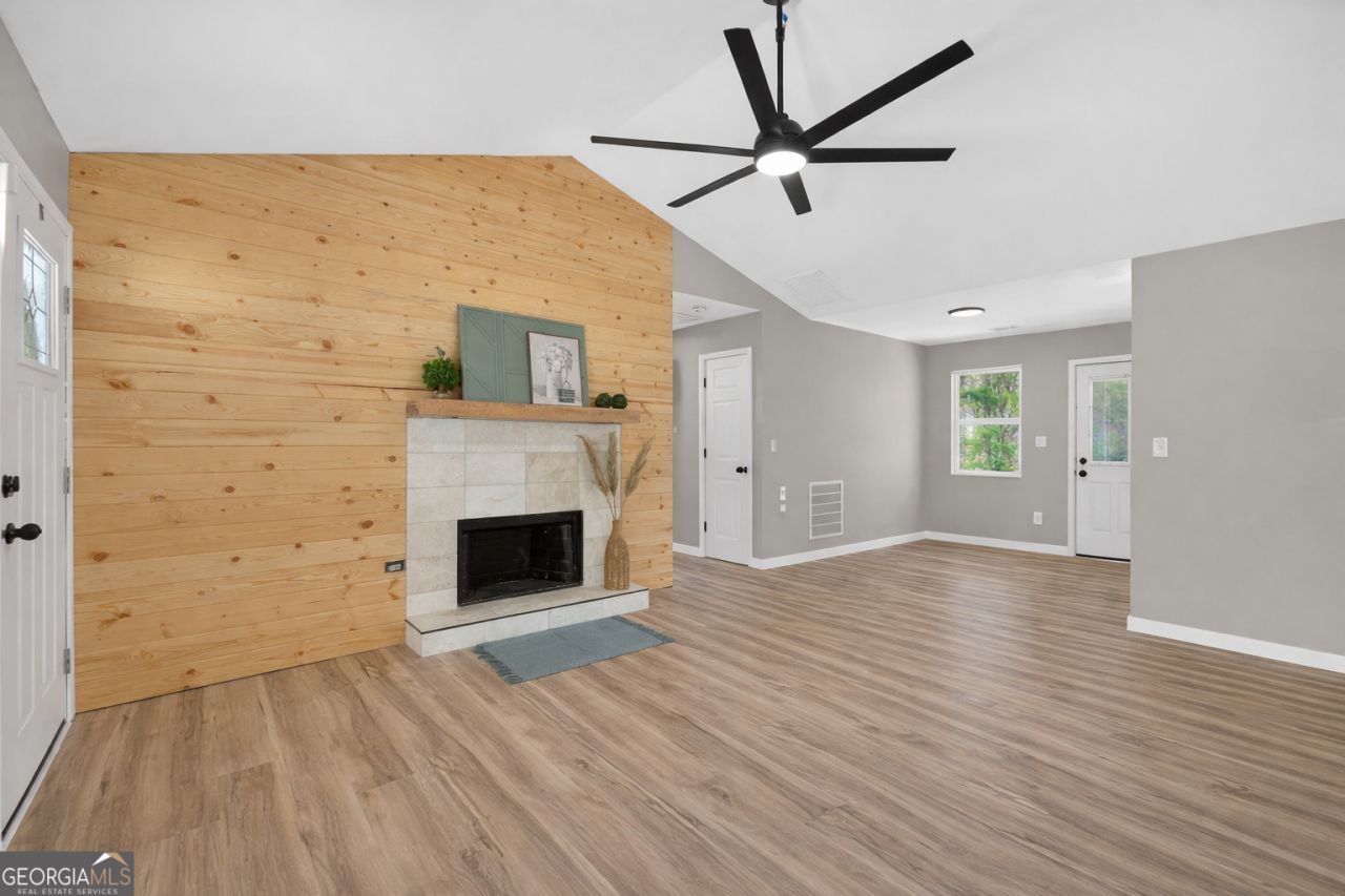 Welcome home to this beautifully renovated ranch that perfectly blends modern updates with comfortable living! From the moment you walk in, you'll be drawn to the stunning ship lap accent wall, cozy fireplace, and soaring ceilings that create a warm yet spacious feel. The open-concept layout flows seamlessly, with the dining area overlooking the living room, perfect for entertaining or everyday family life. The kitchen features newly installed cabinetry, butcher block countertops, and stainless steel appliances, offering both style and functionality. All bedrooms are generously sized, providing plenty of space to relax and unwind. You'll also love the oversized laundry and pantry area, ideal for keeping everything organized for a busy household. A large flex room adds even more versatility, perfect for a home office, playroom, media space, or guest area. Step outside to enjoy the level lot, a welcoming front porch perfect for morning coffee, and a back patio ready for grilling and gatherings. This move-in ready home truly has it all space, style, and flexibility to fit your lifestyle! *Some pictures have been virtually staged for layout concept only .