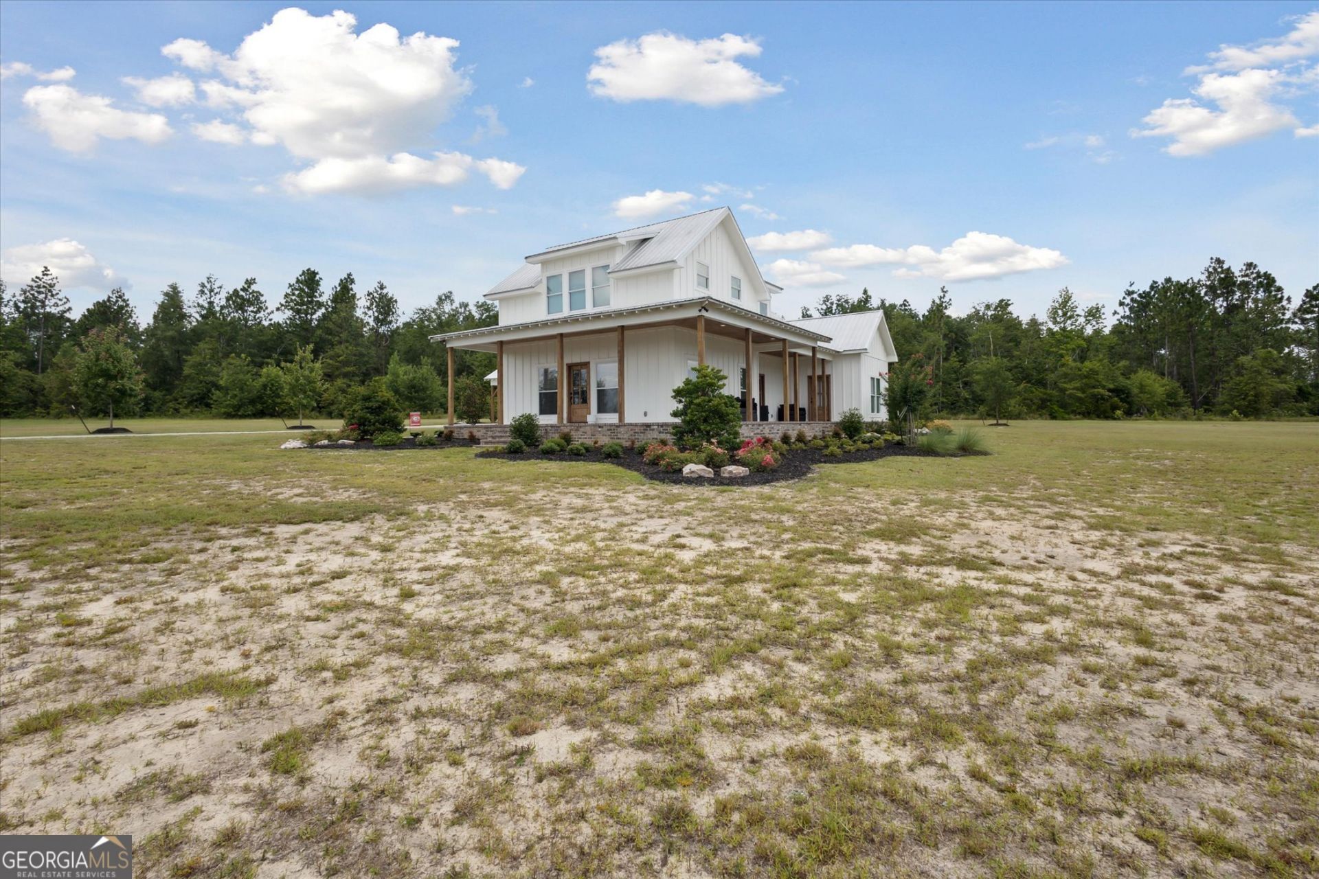 Welcome to this stunning modern farmhouse, perfectly blending timeless charm with practical design. Set on a spacious 2.26-acre corner lot in the desirable Crossroads Landings community, this home offers the ideal setting for comfortable family living. A classic wraparound porch invites you in, while the attached carport and breezeway add both convenience and character. Inside, the primary suite is located on the main floor, featuring a spa-like tiled shower, double vanities, and a generous walk-in closet. The main level also offers a spacious laundry room with extra storage, a convenient half bath for guests, and an inviting family room with vaulted, beamed ceilings that flow seamlessly into the large kitchen and dining area. The kitchen is a chef's dream with an oversized island, granite countertops, and plenty of space to gather. A cozy office just off the family room provides the perfect work-from-home setup or quiet retreat. Upstairs, you'll find two large bedrooms, each with its own full bathroom and walk-in closet. This home has been lovingly cared for and is ready for its next chapter - offering peaceful living with plenty of room to grow.