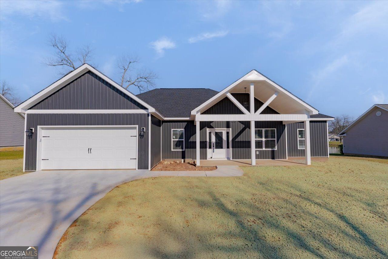 Welcome home to this beautifully crafted new construction nestled in the charming small-town community of Cochran, Georgia, where peaceful living meets modern comfort. Built with pride by a local craftsman, this thoughtfully designed home offers exceptional quality and low-maintenance living with stylish LVP flooring throughout, elegant quartz countertops in every space, stainless steel appliances, and upgraded lighting and ceiling fans that add a touch of sophistication. The spacious primary suite is a true retreat featuring a luxurious standalone soaking tub, a separate walk-in tile shower, and a well-appointed layout designed for relaxation. Step outside to enjoy your own private backyard oasis complete with a fishing pond and pavilion-perfect for quiet mornings, family gatherings, or unwinding after a long day. Located just 25 minutes from Robins Air Force Base, this home combines convenience with the warmth of a welcoming small-town atmosphere and access to Cochran's highly regarded public school system. With its blend of craftsmanship, modern upgrades, and peaceful surroundings, this home offers the lifestyle today's buyers are searching for-don't miss the opportunity to make it yours.