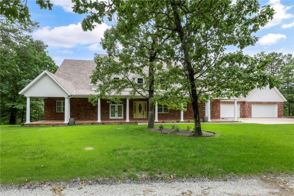 This extraordinary Beaver Lake estate offers over 7,100 sq ft of luxury living on 1 acre with a private 4-slip dock, 50ft swim platform, and paved path to the water. Dramatic wood beams, hardwood floors, soaring vaulted ceilings, exquisite woodwork, and a floor-to-ceiling stone fireplace define the interior. The gourmet kitchen features premium appliances, granite countertops, a spacious island, and large walk-in pantry. An expansive 81-foot deck with lake views creates exceptional outdoor entertaining space. The owner's suite opens with French doors overlooking the water, while four additional bedrooms offer comfort and privacy. The lower level includes a wet bar, stone fireplace, and abundant storage. Additional highlights include a dedicated office with built-ins, 4-car garage, 1,280 sq ft workshop, gazebo, outdoor shower, and new A/C unit in 2025. Designed for lakefront living, this exceptional retreat is minutes to downtown Rogers and area bike trails