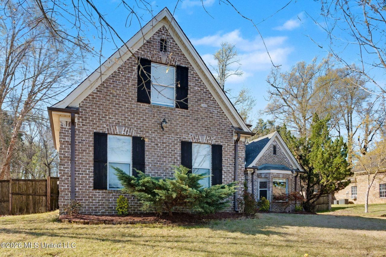 This French Country home boasts a charming, detailed brick front creating classic elegance and a welcoming entry. Upon entering this 3 Bedroom, 2.5 Bathroom plus Bonus room, you are greeted by an open plan that seamlessly connects the large dining and living room combination. The living room features a gas log fireplace and numerous windows that flood the space with natural light. The kitchen is well-appointed, offering abundant cabinet space, a walk-in pantry, a new, five-eye electric range, and a breakfast bar that opens to the breakfast area. The master bedroom suite is a luxurious retreat, featuring a spa-like bathroom equipped with a private toilet area, a walk-in shower, a jetted corner tub, a linen closet, his and hers vanities, and a massive master closet. The main floor includes a laundry room with wall cabinets for added convenience, a half bath is conveniently located for your guests and a double door closet off the garage allows for extra storage space and the doored access to the space beneath the stairwell is perfect for a safe space during a storm. Upstairs, there are two additional bedrooms connected by a shared bath, as well as a large bonus/playroom. Interior finishes include luxury vinyl plank flooring that provides durability and style and the abundance of windows ensures bright, welcoming spaces in every room and it is plumbed for a full 3rd bathroom. The exterior includes a brand new roof with warranty, a spacious 30x13 covered back porch and the vinyl trim ensures low maintenance. The privacy fenced backyard with a double gate entry creates easy access to the backyard while the extra concrete offers additional parking space. The home is located on a dead-end street, ensuring minimal traffic, and is just minutes from Historic Hernando Square.