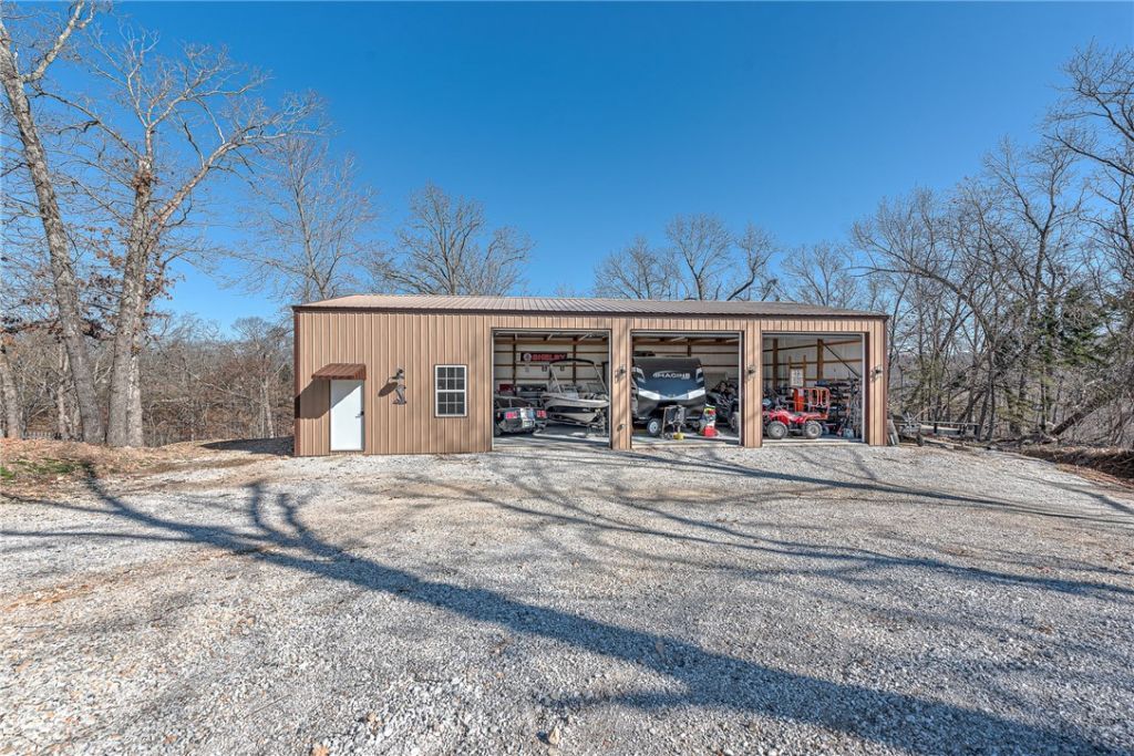 Perfect blend of comfort, space, and lake lifestyle with this beautifully updated home situated on 2.56 acres directly across the street from Beaver Lake. Thoughtfully renovated, the home features refinished hardwood floors, fresh interior and exterior paint, and stylish new light fixtures that create a clean, modern feel. The main level offers 3 BR and 2 baths, including a fully remodeled primary bath. The kitchen is equipped with new appliances. Downstairs you'll find a spacious bonus area complete, a Mini Kitchen, pool table space, and a dedicated theater room featuring a Polk Audio system?ideal for hosting or relaxing at home. Plus a full bath and Bedroom flex room. Step outside and take advantage of the impressive 30x60 shop, outfitted with three 12x12 garage doors, extensive outlet access, LED lighting, and wired for a 35 AMP camper. Located just 1M from Pebble Beach and 1.75M from Jim's Trail Public Boat Ramp, this property is a dream for lake enthusiasts with space, updates, and proximity to Beaver Lake!