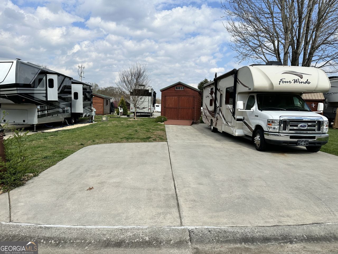 Perfectly located back in RV lot. Close to all the outdoor amenities and clubhouse. Short distance to resort entry. 12x10 shed with shelving and entry ramp for easy storage for your toys! Room for a tiny home. Level cement pad just power washed and ready for your mountain paradise enjoyment at a smart price!A beautiful vacation lot, future permanent residence or rental property. Local lender financing available! Crossing Creeks RV Resort and Spa welcomes class A,B and C RV's, as well as travel trailers and 5th Wheels!
