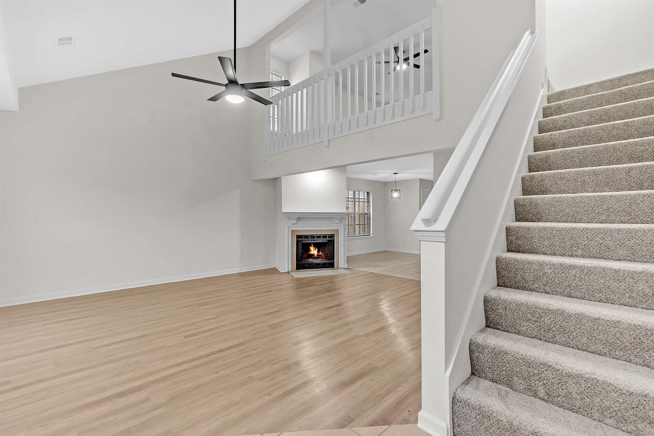 Charming 2-bed, 2.5-bath Cordova home featuring an open living area with vaulted ceilings and a cozy fireplace. Primary suite includes a walk-in closet, and the kitchen offers ample cabinet space with a breakfast bar. Enjoy a private, tree-lined backyard with a deck ? perfect for relaxing or entertaining.