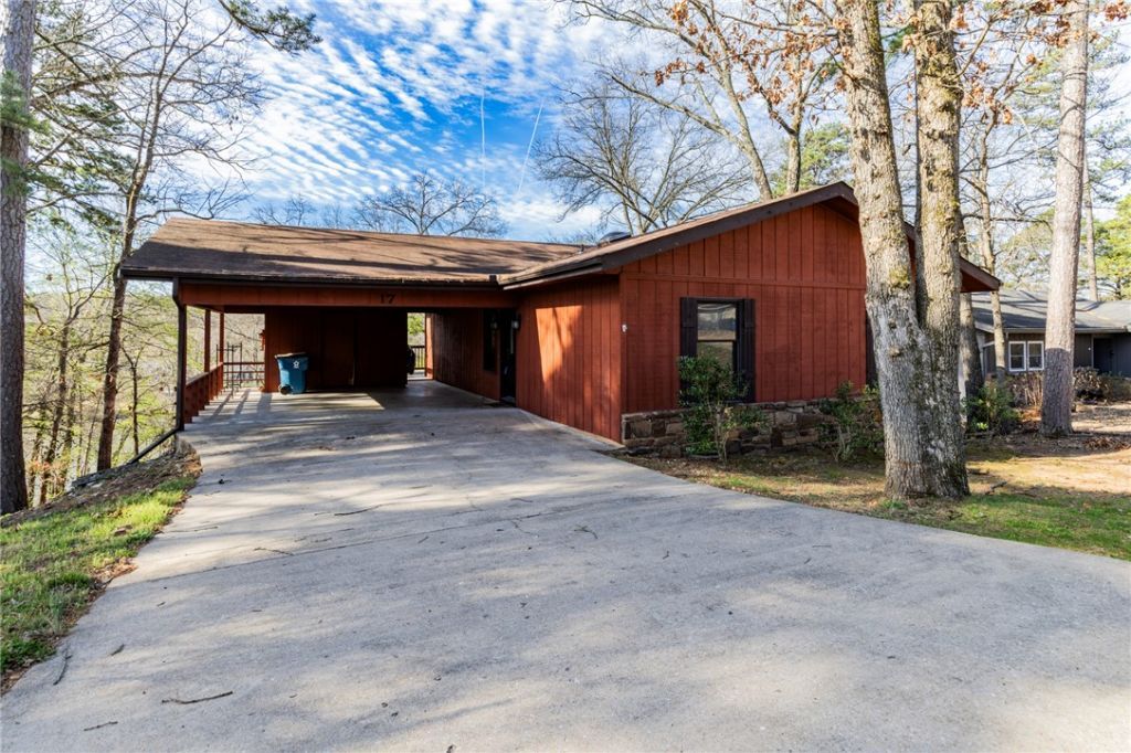 Experience refined lakefront living on the peaceful shores of Lake Rayburn in Bella Vista. This true lakefront property at 17 Devizis Dr includes a private dock, offering direct access to one of the area's most desirable no-wake lakes?perfect for kayaking, fishing, and enjoying the quiet beauty of the surroundings.Inside, the home showcases a dramatic vaulted ceiling, exposed beams, and a striking floor-to-ceiling rock fireplace, creating a warm yet elevated living space centered around serene lake views.The kitchen is thoughtfully designed with a functional peninsula and stylish finishes, ideal for both everyday living and entertaining.For those looking to personalize the space, the seller is offering a $25,000 allowance, providing a wonderful opportunity to update and tailor the home to your own style while enjoying its timeless character.Blending natural charm with a sought-after waterfront setting, this property offers a rare opportunity to enjoy the best of Bella Vista lake living.