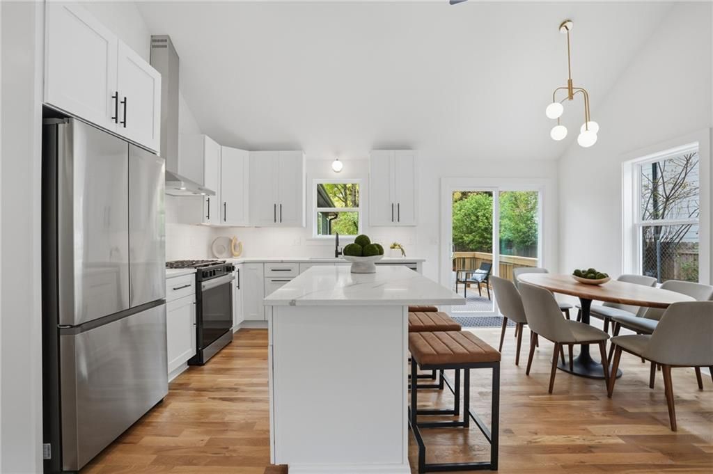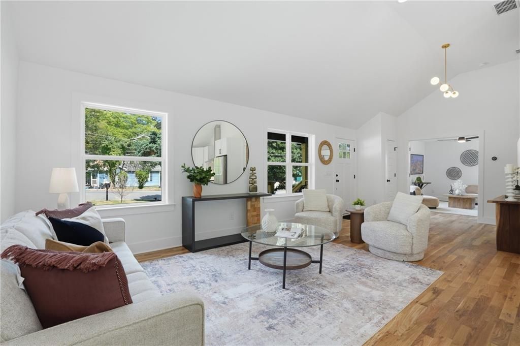 Say Hello to this beautifully reimagined East Atlanta Village home, where Thoughtful Design, Expanded Living Space, and Modern Comfort come together seamlessly. Fully Gut Renovated and enhanced with a Substantial Addition by the renowned M2REST team, this home delivers the Space, Layout, and Quality today's buyers are searching for?along with the benefit of being in the highly rated Burgess-Peterson Academy school district. From the moment you step inside, the home opens into a Stunning, Light-Filled Main Living Space where Vaulted Ceilings and Gleaming White Oak Hardwoods create an inviting sense of volume and warmth. The Living, Dining, and Kitchen areas Flow Effortlessly together?perfect for hosting lively gatherings while staying connected to every moment. This is truly a 'Party in the Front, Sanctuary in the Back home, designed for entertaining up front and unwinding in privacy at the rear. At the center of it all, the Kitchen is both beautiful and functional, featuring a Large Island for gathering, Solid Wood Cabinetry, Quartz Countertops, and a full suite of Stainless Steel Appliances. Just off the main living space, a Versatile Room enclosed with glass French doors offers Flexibility as a Fourth Bedroom, Home Office, or Additional Living Space. The layout is designed with both comfort and flexibility in mind, including a Full Guest Suite with its own Walk-in Closet and Private Bath?ideal for visitors or multigenerational living. At the rear of the home, the Expansive Primary Suite serves as a true retreat, complete with Vaulted Ceilings, Peaceful Backyard Views, a Spacious Walk-in Dressing Room, and a Spa-inspired Bath with a Soaking Tub, Glass-Enclosed Shower, Dual Vanities, and a Private Water Closet. Step Outside and enjoy Beautifully Landscaped Front and Back yards, a Welcoming Front Porch, and a Spacious Back Deck perfect for relaxing evenings or weekend gatherings. A Rear Parking Area offers Convenient Off-Street Parking, with additional space for guests. With All-New Systems throughout?including Roof, Windows, Plumbing, Electrical, and HVAC?this home offers true peace of mind and Low-Maintenance Living for years to come. Don't let the exterior fool you?this is an Exceptional Opportunity for a true 4-bedroom, 3-bathroom home in one of Atlanta's Most Desirable Neighborhoods, just moments from East Atlanta Village, parks, dining, and major highways. This is the one you've been waiting for. Welcome Home!