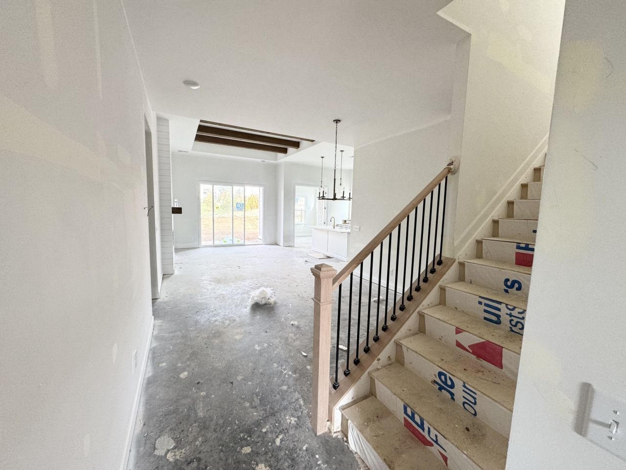 Quick Move in Damien Plan. 4 beds and 3 full baths. 2 Bedrooms on main floor with 2 bedrooms up with Gameroom and Media Room. Gourmet, Kitchen layout with Farmhouse sink and soft close doors and drawers, under cabinet lighting, built in trash can, Wood Shelving in Primary Closet and Pantry, Cedar Beams in Family Room, Coffered Ceiling in Office. Tray ceilings in Primary and foyer. Hardwood Stairs. Tiled shower in Primary. Electric Fireplace with Cedar Mantel. Laundry Sink. Drop Zone. Door from primary closet to Laundry. HOA includes Internet with 1 GIG from United