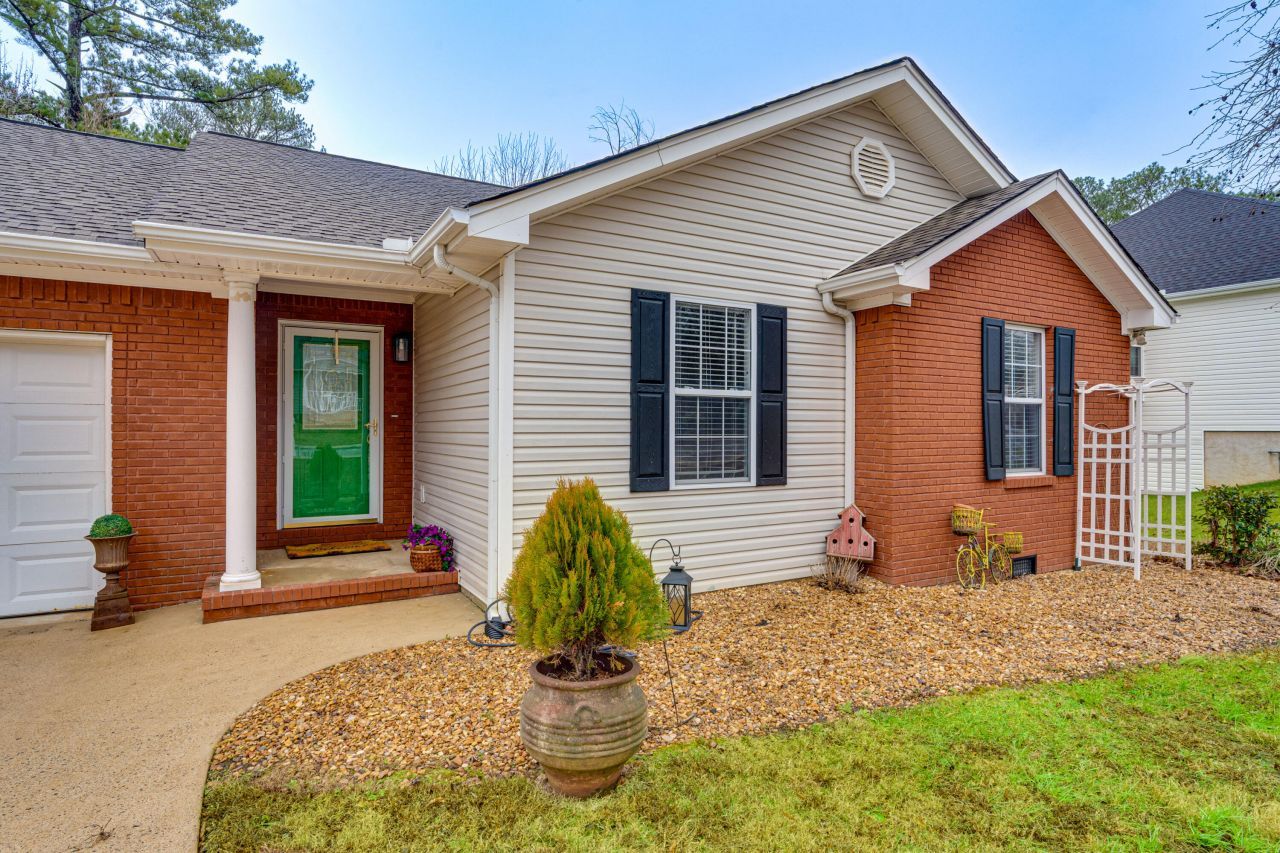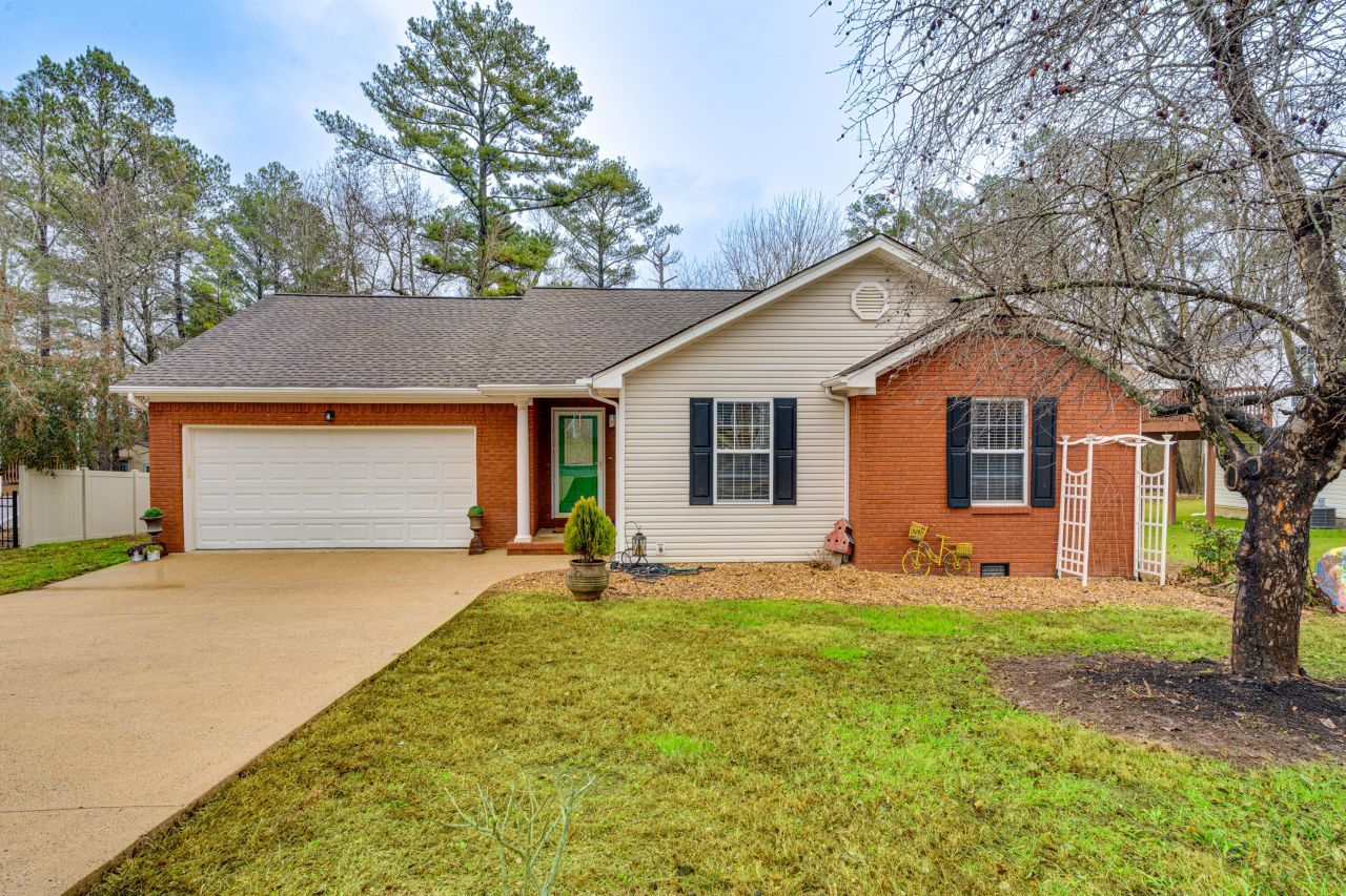 Welcome home to easy, one-level living on a flat lot in a peaceful tucked-away neighborhood! This well-maintained 3 bedroom, 2 bath home features a bright, open layout with a spacious great room showcasing a cathedral ceiling and gas log fireplace. The kitchen offers attractive cabinetry with tile backsplash, and flows perfectly into the dining area highlighted by a charming bay window overlooking the private backyard. The primary suite includes a tray ceiling, walk-in closet, and an accessible open tiled shower. Two additional bedrooms are located on the opposite side of the home and share a full bath with a tub/shower combination for additional family members or guests. You'll love the hardwood floors throughout, the front-loading two-car garage, and relaxing outdoor spaces including a covered back porch with a swing, plus a fenced backyard ideal for pets, play, or fresh air entertaining. Enjoy sidewalks and streetlights throughout the neighborhood, all while being conveniently located less than 5 minutes from Hamilton Place and I-75?quiet living with quick access to everything Chattanooga has to offer!