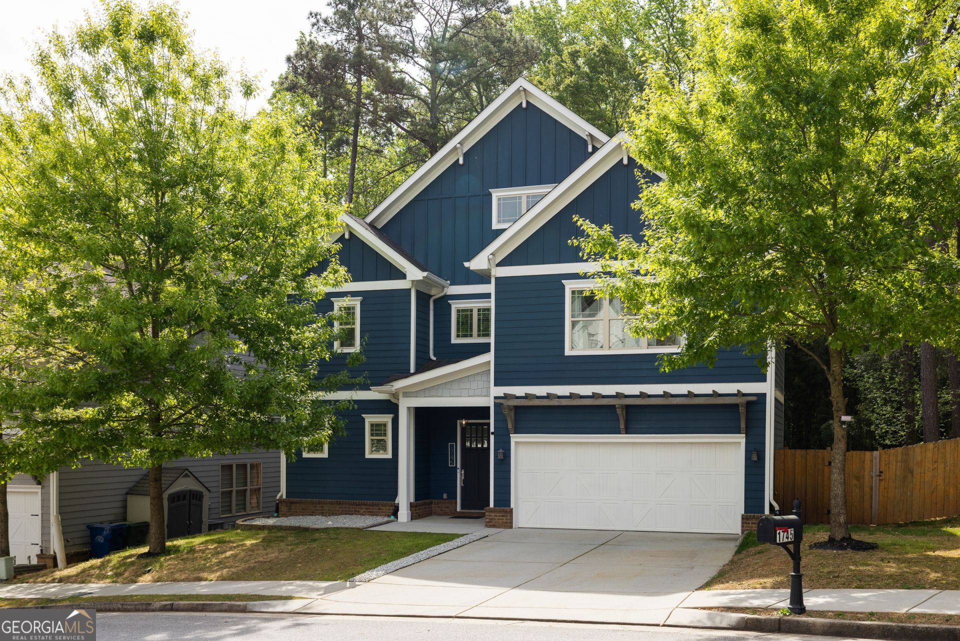 Incredible opportunity to own a modern Craftsman 4-bed, 3.5-bath home in East Atlanta's sought-after Burgess-Peterson school district. Nestled on a secluded cul-de-sac just one mile from EAV, this home sits on over an acre in the desirable Creekside neighborhood, a rare find in the city. Built in 2017, this Craftsman features custom features throughout including 10-ft ceilings, a stunning quartzite kitchen island, oak hardwood floors, a spa-like bathroom, and instant hot water. The open kitchen, dining, and living area includes a gas fireplace, surround sound wiring, and a high-end range, perfect for entertaining and everyday living. Upstairs, four generously sized bedrooms with en-suite access, walk-in closets, and custom built-ins offer ample storage. The primary suite is a true retreat, featuring a custom sliding door, vaulted bathroom ceiling, and a spacious walk-in closet. Outside, a wooden deck, fully fenced backyard, fire pit, and entertainment-ready features make it an entertainer's dream. The home also includes a 2-car garage, dual-zone HVAC, Ecobee thermostats, whole-home surge protection, and Cat5 wiring. Meticulously maintained and move-in ready.