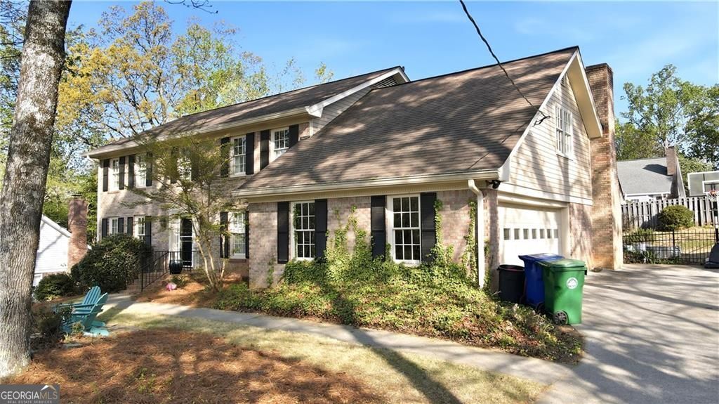 Situated in a highly sought-after Dunwoody community within the Vanderlyn school district, this well maintained three-sided brick home is tucked away on a quiet cul-de-sac and features a desirable side-entry garage. Enjoy unbeatable convenience to top-rated dining, shopping, and major interstates. The home offers an inviting layout, beginning with a formal dining room that flows into a spacious open-concept living area. The great room includes vaulted ceilings with exposed beams, custom built-in cabinetry, and natural light. The kitchen is equipped with a center island, granite countertops, tile backsplash, stainless steel appliances, double ovens, recessed lighting, and a bright breakfast area overlooking the private backyard. A main-level bedroom and full bathroom provide an excellent space for guests or a home office. Upstairs, dual staircases lead to four additional bedrooms and two full baths, including an oversized owner's suite featuring a sitting area, large walk-in closet, and an updated spa-like bathroom with a walk-in shower. The daylight walk-out basement expands the living space with a large game room and sitting area, along with fresh paint and new carpeting. An unfinished area offers a workshop and ample storage. Recent upgrades include a new HVAC system with HEPA filtration and blue light technology, newer Pella windows, plantation shutters, a newer water heater, and hardwood flooring throughout. The fenced backyard is a private retreat with lush landscaping, a screened porch, and an expansive patio-ideal for relaxing or entertaining.