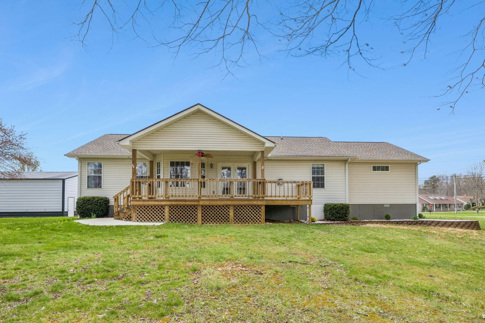 Welcome to 18 Sundown Lane, a 3-bedroom, 2.5-bath home with an office, situated on 1.78 acres in a peaceful Crossville setting. This property offers privacy, space, and functionality rarely found together. The main living area features hardwood floors, a cathedral ceiling, ceiling fan, and an electric fireplace, creating a warm and inviting atmosphere. The open kitchen flows into the living room and includes granite countertops, tile backsplash, hardwood floors, and a spacious dining area that overlooks the covered back deck. The dedicated office has a wall-to-wall bookcase and ample storage. A recently upgraded walk-in shower adds modern comfort. The property also features an oversized, newly built metal 2-bay garage/shop with an air compressor, plus a 1-bay attached garage, making it a true shop-lover's dream. Natural gas is available at the road but is not currently connected to the home. A rare opportunity combining acreage, living space, and exceptional workshop amenities. Schedule your private showing today.