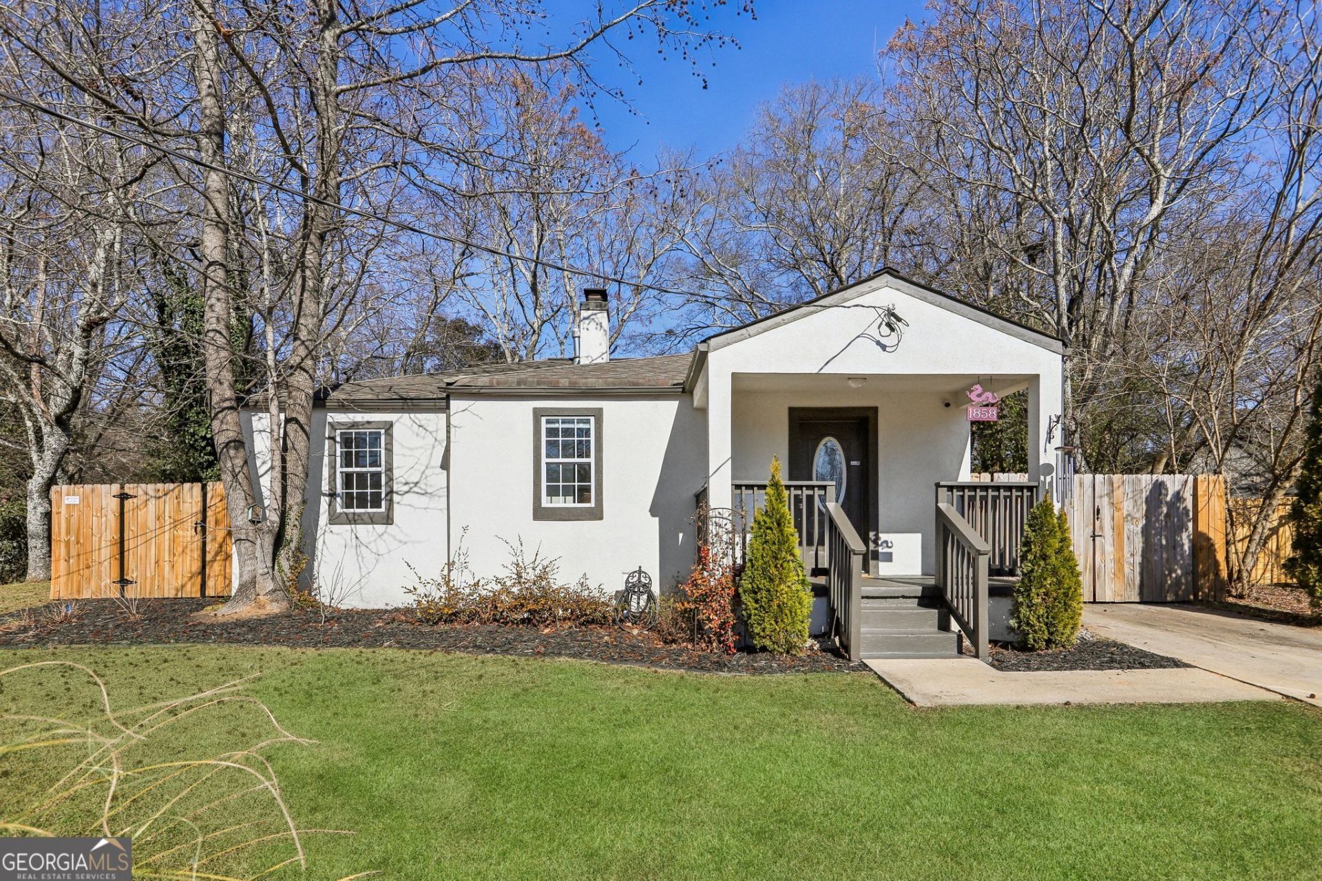 Nestled in the vibrant East Atlanta Village and close to the beloved East Lake neighborhood lies 1858 Flat Shoals Drive, the kind of home that's been cared for, not just lived in. Close to beloved dining options like Banshee and Argosy, local boutiques, and everyday necessities, 1858 Flat Shoals is an ideal location for folks on the go. Step inside and feel the character immediately. The light-drenched living room features an original fireplace and timeless crown moldings, just the charm you are looking for! The living room flows comfortably into an open dining area and an adjacent kitchen. New marble look tile runs throughout the kitchen, with its dark granite countertops and matching backsplash, creating a seamless, modern look. Two spacious bedrooms, a full bathroom, and a large dedicated laundry/storage room top off the home. The current owners have taken close care of the property, and it shows. With thoughtful upgrades throughout, including new flooring, new fans and light fixtures, and a new water heater, you can move in with total peace of mind. Turnkey actually applies here. Outside, your private oasis awaits. Unwind on the paved back patio surrounded by raised garden beds ready for your next harvest. A large, permitted storage and workshop shed rounds out the backyard - ideal for tools, projects, and all the bookshelves you'll definitely get around to building. The owners installed a new metal-post wood fence surrounding the entire yard, so your furry loved ones can't pull a fast one and escape. Classic charm, modern updates, and an unbeatable location; welcome to 1858 Flat Shoals!