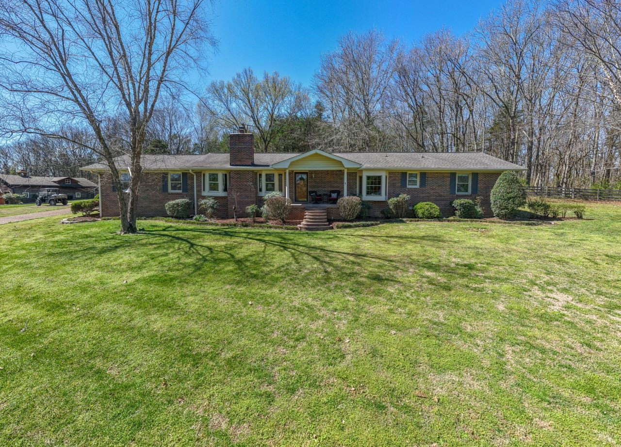 This beautiful brick ranch home is surrounded by appx 280 acres of scenic woodlands, providing privacy and beautiful views. Inside, you'll find an open floor plan with a cozy fireplace, formal dining room, and a separate office -ideal for working from home. The kitchen opens into the family room and features quartz countertops, and new tile flooring. The home showcases beautiful hardwoods with detailed woodwork throughout. The primary suite includes a huge, tiled shower, and new quartz countertops. The backyard is fully fenced and has a 32 x 50 barn with two horse stalls, an office above, hay storage, a turnout shed, equipment shed-raised garden area-perfect for hobby farming. Recent improvements include a new heat pump, ductwork installed last year, all new water and sewer lines, and all new energy efficient triple pane windows. Huge patio and A rear entry garage 25 x25 - with epoxy flooring- completes this exceptional property- New roof will be installed.