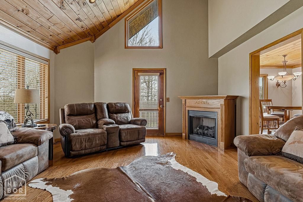 A true hunter's retreat with the space, privacy, and features to match. Situated on 28+ acres, this 3 bedroom, 3 bathroom home offers a rare opportunity to own a property designed for both everyday living and outdoor enjoyment. The land is the highlight featuring two ponds, established hunting trails, two pastures, and an abundance of wildlife, with deer frequently seen throughout the property. Whether you're an avid hunter, outdoorsman, or simply looking for room to roam, this setting delivers a lifestyle that's hard to find. The home offers a warm, inviting feel with vaulted ceilings, cedar siding, and multiple deck spaces designed to take in the surrounding views. The private upstairs primary suite serves as a true retreat, complete with a walk-in closet and an en-suite bathroom. Inside, a propane gas fireplace adds warmth to the main living area, while the fully finished basement features a pellet stove, creating an additional comfortable living space. The home is also equipped with two water heaters to support it efficiently. The property is equally functional, featuring a 30x40 insulated shop with electricity, a powered barn, and a safe room providing space, security, and versatility for a variety of uses. If you've been searching for acreage, privacy, and a property that offers both lifestyle and utility, this one stands in a class of its own.