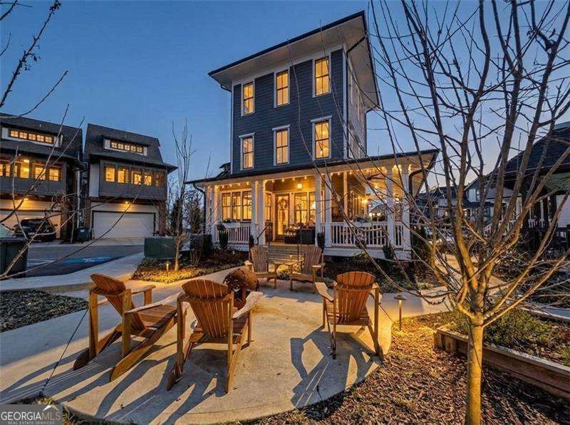 Hard to find 3 years young home with Old World charm near downtown Kennesaw! Historically inspired modern Cottage homes with exterior maintenance (incl painting, yard & roof) covered by the HOA. This was one of the showcase homes in the community and is the ONLY Tower Foursquare plan built there. The entry level has a huge wrap around exterior porch (almost 400 square ft) with a Gourmet Kitchen overlooking the living area. Kitchen boasts a breakfast area, spacious island 2/seating, all high end upgraded appliances, vented hood (to outside), as well as a myriad of custom cabinet upgrades and custom backsplash. The main living area has 10' ceilings, plenty of windows to let in natural light, a stunning modern fireplace plus upgraded hardwood floors that continue through all levels of the home (no carpet anywhere!) There are 6 foot real wood windows throughout and extra large moldings with shiplap feature wall in living room The second floor is dedicated to the Master Suite and the Laundry room. The Master bedroom is large enough to accommodate seating and leads to the spa-like Master bath which has walk in frameless door shower with custom tile work, double vanities, and free standing soaking tub. The third floor has 2 secondary bedrooms with a full bath that has frameless door shower and vanity. Tankless hot water heater as well as full interior sprinkler system. Outside at the rear of the house is a dedicated inviting back entry area with another covered porch flanked by 2 storage/utility areas. The development was laid out to encourage a sense of community with gathering areas around firepits, a clubhouse with big screen TV and Big Green Egg, a pool, as well as Dedicated raised beds for gardening (the home has its own). Walking distance to beloved downtown Kennesaw businesses like Lazy Labrador and Frozen Cow which are just across from Kennesaw's new outdoor concert venue!
