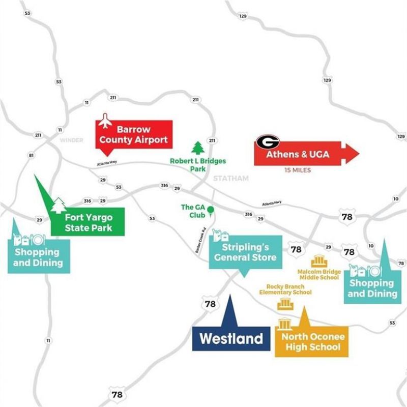 NEW CONSTRUCTION, 3-SIDED BRICK home located in a highly sought-after school district in North Oconee County. Westland is a beautiful new community, and Amenities include an oversized pool and cabana, pickleball courts, tennis courts, sidewalks, streetlights, and playground. BUILDER PAID CLOSING COST & RATE BUY DOWN when using their preferred lender. The Edison floorplan is a 4 bedroom, 3 full bath plus powder room two-story home. Upon entering this estate-style home, you'll find a formal dining room and the central family room with an open island kitchen that offers quartz countertops, GAS COOKTOP, DOUBLE OVENS, and stainless steel appliances. In addition to a casual dining area so everyone stays connected. The primary bedroom suite is also on the main level, located to one side of the home for privacy. The adjoining spa-like bath includes a garden tub, separate shower and dual vanities, plus there is an oversized closet. Upstairs boasts a huge second living room ideal for recreation, movie nights and gaming. Three spacious secondary bedrooms include generous closets and there are two full baths to ensure everyone has their own space. All homes include IRRIGATION. Conveniently located on Hwy 78 & Hwy 53, just minutes from 316, schools, shopping, parks, the University of Georgia, downtown Athens, and so much more! Stop by for a tour and walk the completed homes! You won't be disappointed! PHOTOS ARE FOR ILLUSTRATIVE PURPOSES AS THIS HOME IS CURRENTLY UNDER CONSTRUCTION. ESTIMATED COMPLETION IS MAY. Stop by for a tour and walk the completed homes! You won't be disappointed!