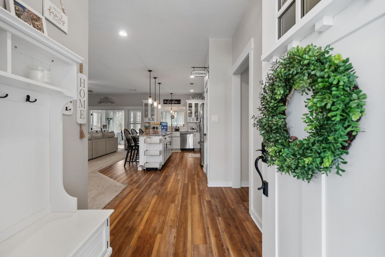 Welcome home to this beautifully updated farmhouse chic retreat that's truly move-in ready! This meticulously kept home features an inviting open floor plan perfect for everyday living and entertaining. The stunning kitchen is the heart of the home, complete with granite countertops, a classic farmhouse sink, oversized breakfast bar, white cabinetry, and a spacious pantry. The thoughtfully designed layout offers privacy with primary suite located on the opposite side of the home, creating a peaceful retreat. You'll also appreciate the large laundry room with a utiltity sink, making everyday tasks a breeze. Step outside and enjoy the space and possibilities of approximately 3 acres, along with the convience of a two-car garage and the added peace of mind of a whole-home generator. Call for your private showing today!