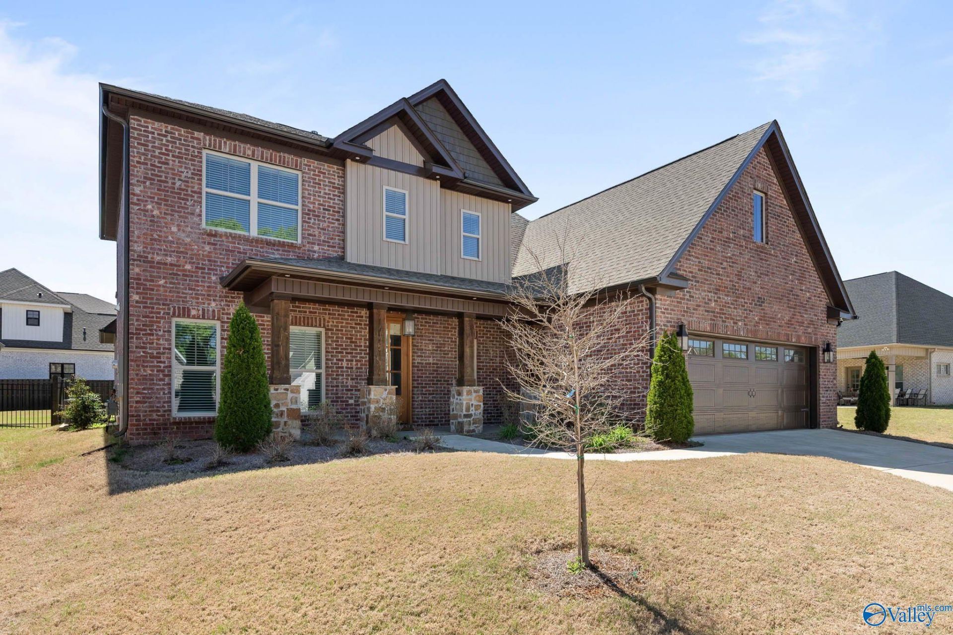 Fall in love at first glance with this stunning modern home conveniently located near everything in South Huntsville. From charming glass transoms and shiplap accents to a striking stone fireplace and one-of-a-kind spa like primary bathroom, every detail feels intentional. Enjoy premium LVP floors throughout the main level, a gas cooktop with GE appliances with an oversized island and ample counter space, and a functional drop-zone with mud sink off the garage. Upstairs features a built-in desk and MASSIVE walk-out attic storage and large bonus room. Enjoy a spacious covered back patio enclosed in a private fenced yard?perfect for relaxing or entertaining. This one truly has it all!