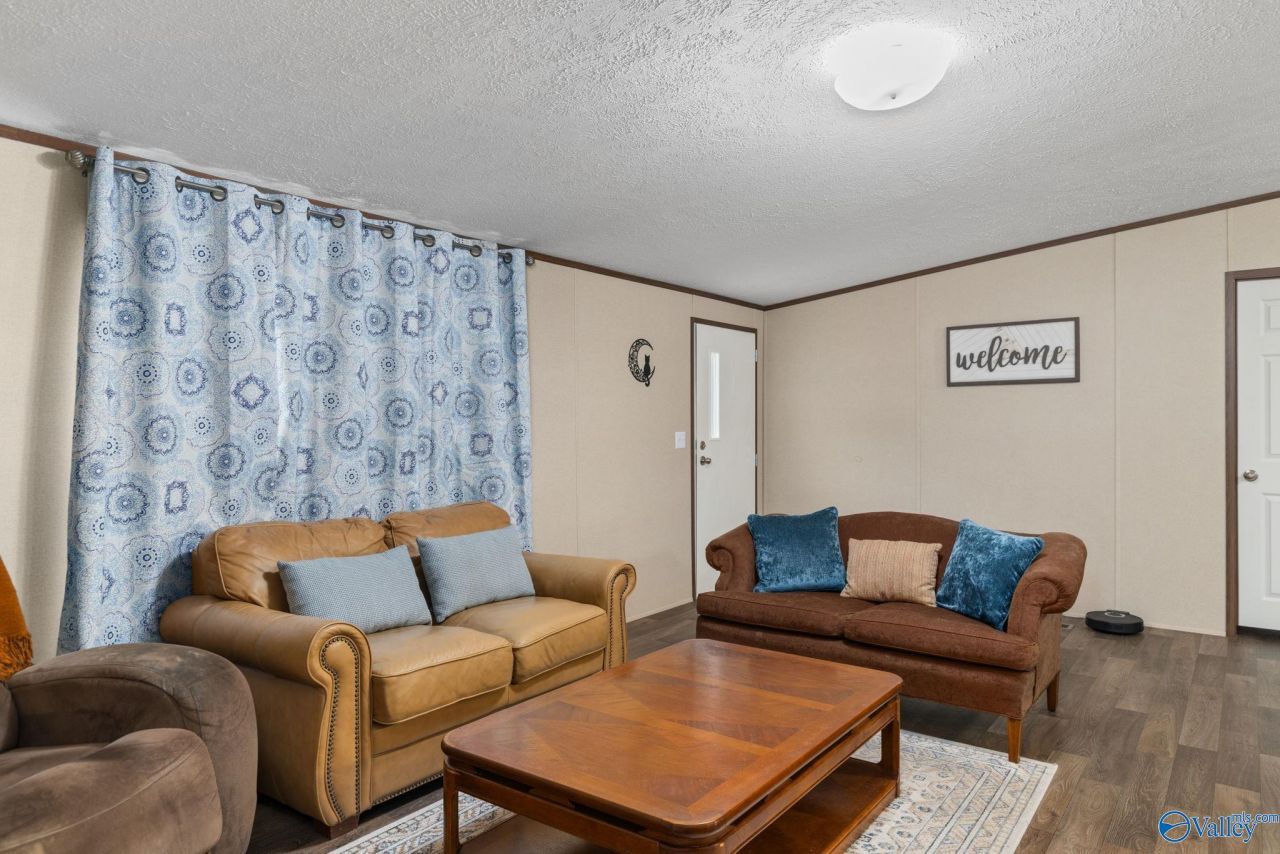 Check out this 2023 model three bedroom two bath double wide mobile home located in a peaceful country setting. Open concept living area. No carpet, home has LVP flooring throughout and modern fixtures. Eat in kitchen features an island with storage and plenty of natural light. Neutral color scheme throughout. Primary on suite has a walk in closet. NEW front and back wooden decks have been added. Backyard is level with plenty of space for entertaining. Centrally located in the Shoals area just minutes from a boat ramp to go enjoy the summer on the Tennessee River.