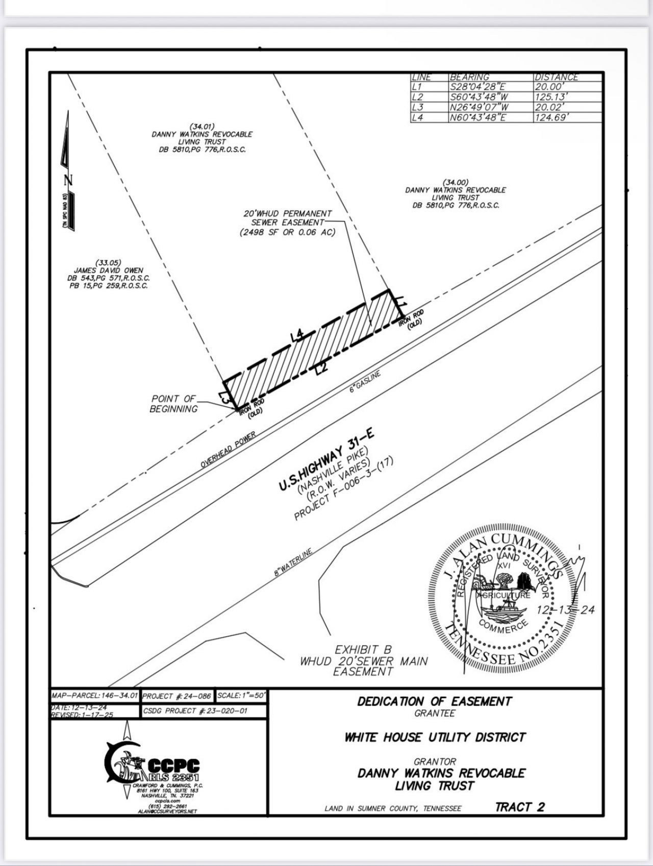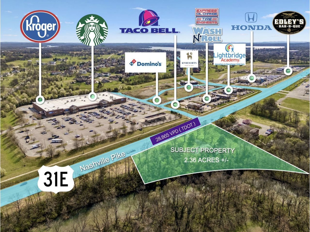 PRIME GROUND LEASE opportunity at 2042 Nashville Pike, Gallatin, TN 37066-an exceptional 2.36+ acre commercial site spanning two parcels (Tract 2 and Tract 3), positioned directly across from the high-performing Kroger Marketplace at 2011 Nashville Pike. This highly visible property benefits from strong frontage along the US-31E/Nashville Pike corridor, with approximately 27,000 vehicles per day, delivering outstanding exposure for retail, restaurant, or service-oriented users. Located within one of Gallatin's fastest-growing commercial corridors, the site is surrounded by established national and regional anchors, including Lowe's Home Improvement, Walmart Supercenter, and multiple high-traffic fuel and convenience operators such as Shell, Thorntons, Circle K, RaceTrac, MAPCO, and 7-Eleven. This dense retail environment ensures consistent consumer traffic and long-term viability for a wide range of commercial uses. A major advantage is that sewer infrastructure is now complete and development-ready. Recent surveys and recorded plats confirm dedicated 20-foot permanent easements to White House Utility District (WHUD) along the northern boundary, including a fully installed and dedicated sewer main, significantly enhancing site readiness and reducing development timelines. Additional utilities, including water, power, and gas, are available along the highway frontage. The property includes an approximately 2,300 square foot single-family residence currently leased, which can be removed or relocated at the tenant's expense to accommodate new development. Zoned Commercial, this is a ground lease offering with flexible, negotiable terms based on tenant strength, lease structure, and proposed use. Position your business in one of Middle Tennessee's most active retail corridors with infrastructure in place and visibility that delivers. Package deal-Incentives available for tenants securing all three sites (MLS No. 3156214, 3156215, and 3156216).