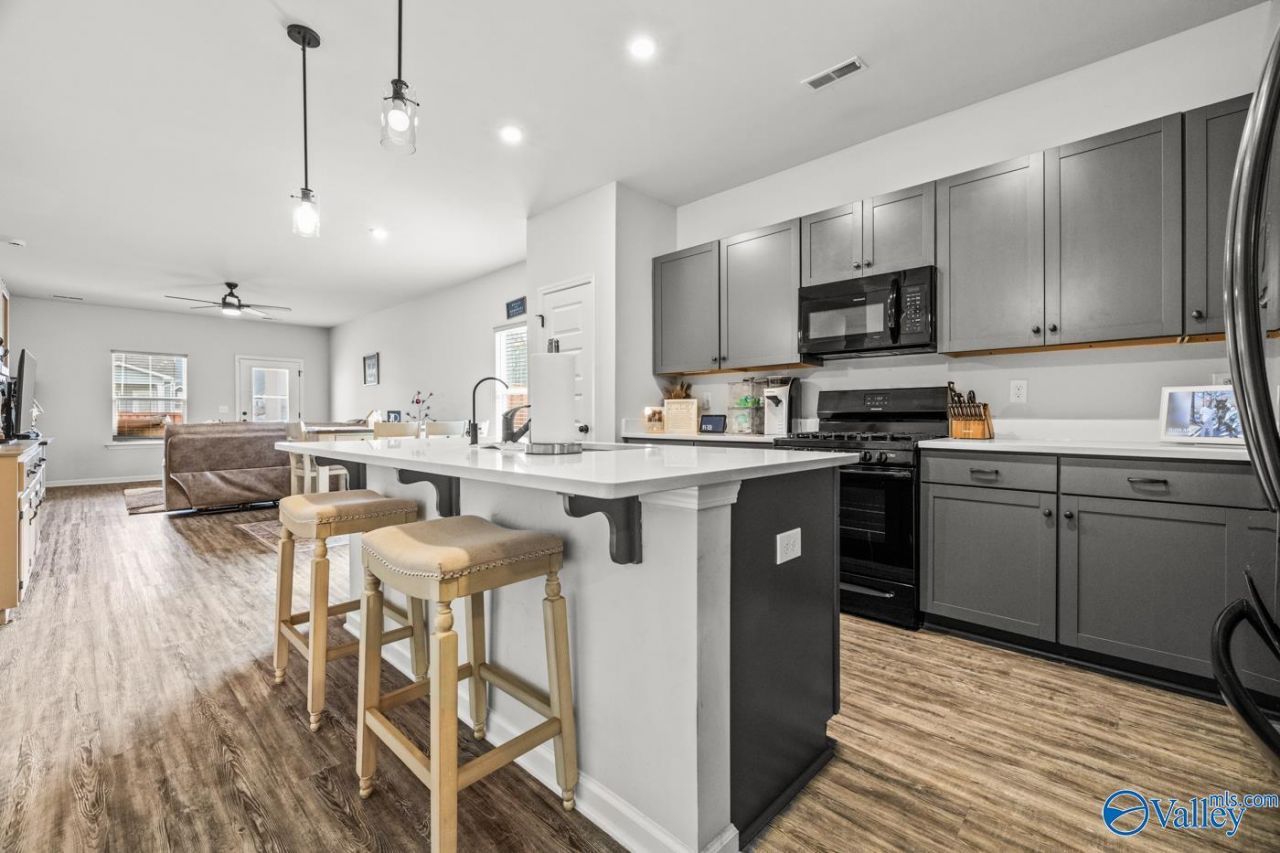 Welcome to 211 Faribrook Drive, a beautifully maintained, nearly new home located in the growing New Market community. Built just two years ago, this 3-bedroom, 2-bath residence offers modern finishes, low-maintenance living, and a functional open-concept floor plan. The main living area flows into a contemporary kitchen featuring black appliances, sleek countertops, ample cabinetry, and a large island ideal for casual dining and entertaining. The spacious primary suite includes a walk-in closet and an en-suite bath with double vanities and a walk-in shower. Two additional bedrooms provide flexibility for guests, a home office, or family use.