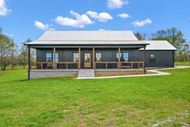 Beautiful newer construction home on 5.42 acres just minutes from Winchester! This 3 BR, 2 BA home, built in 2023, features a modern black metal exterior and metal roof for durability and low maintenance along with a spacious 2-car garage. Enjoy comfortable living with large covered porch on both front and back, an open layout and generous bedrooms, plus a large crawl space offering excellent storage potential. Plenty of room to spread out, garden, or enjoy peaceful country surroundings while still being convenient to town amenities. A great opportunity for those looking for newer construction with acreage and privacy.