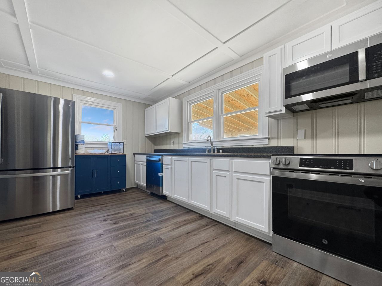 Beautiful Farm House that has been completely remodeled. New roof, new windows, new AC, bathroom and kitchen gutted. Wood and Tile flooring throughout. Has excellent view of lake. All appliances included. Move In ready. Two family rooms - one could be used as a third bedroom.