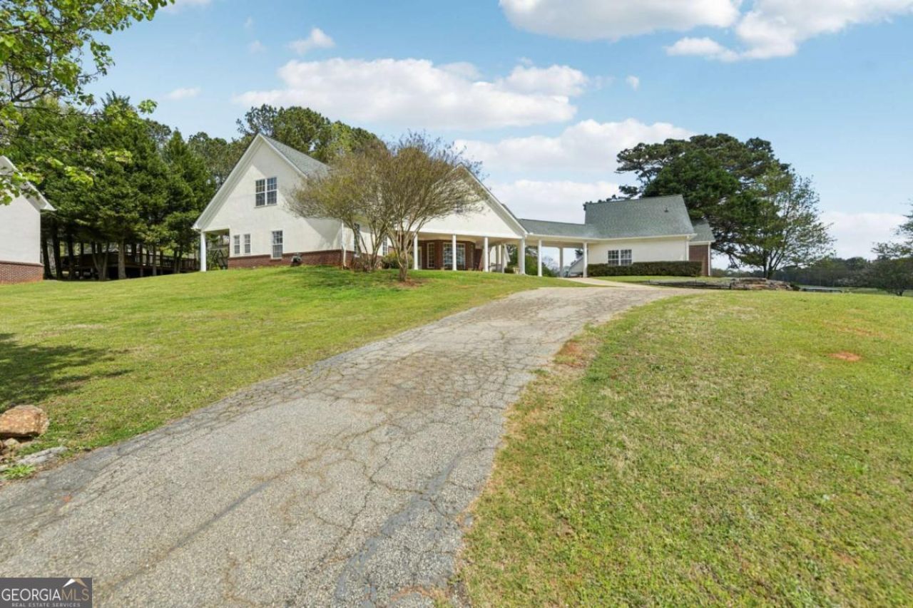 Experience Georgia country living at its finest with this private 24+ acre equestrian estate in Locust Grove, a rare blend of luxury, functionality, and serene seclusion. Beyond the gated entrance, a picturesque, tree lined driveway winds past rolling pastures and a tranquil pond, setting the stage for a truly unforgettable property. Currently set up for horses, 2 could come with the deal. The entrance is set up to host weddings and a petting animal set up. The main residence offers a thoughtfully designed layout with a primary suite on the main level and two additional bedrooms connected by a Jack-and-Jill bath. The inviting living room showcases a dramatic floor to ceiling stone fireplace and flows seamlessly into the open kitchen, complete with a spacious island ideal for gathering and entertaining. Upstairs, a versatile retreat features a den, office space, and additional rooms currently styled as a game room, theater, and private getaway with its own bath. A climate-controlled garage with guest suite and private bath, connected by a porte-cochere, adds even more flexibility. Designed with both lifestyle and practicality in mind, the property also includes a detached 2-car garage with expandable storage above, plus a separate 3-car garage with workshop space and 2-bedroom apartment, ready for your finishing touches. Recent updates include a roof approximately 4 years old and HVAC systems around 5 years old, offering added peace of mind. For equestrian enthusiasts, this property is truly exceptional. A classic red barn features six oversized 15x15 stalls, water and electricity, a tack room, hay loft, and lean-to for equipment, along with a round pen for training. Indian Creek runs along the back of the property, enhancing both beauty and functionality for outdoor enjoyment. Tucked away in a quiet, secluded setting, yet conveniently located near Interstate 75, you'll enjoy easy access to shopping, dining, and everyday conveniences in Locust Grove, including destinations like Tanger Outlets Locust Grove. The area is known for its spacious properties, peaceful surroundings, and a welcoming community atmosphere that offers the perfect balance of privacy and accessibility. This is more than a property, it's a lifestyle defined by space, freedom, and timeless countryside beauty. Schedule your private tour today and experience it for yourself. Discounted rate options and no lender fee future refinancing may be available for qualified buyers of this home