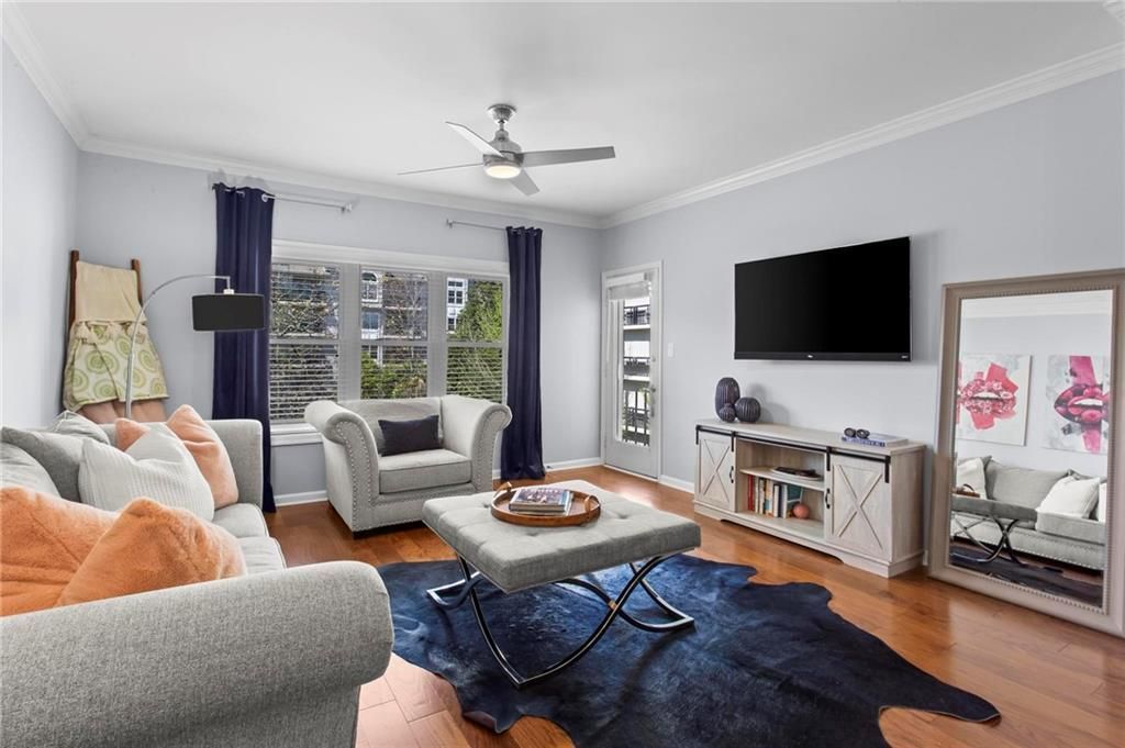 Amazing opportunity for a renovated, one bedroom home in the coveted River West community! Drenched in natural light, this charming condo has an ideal floorplan with major perks. Delightful updates include BRAND NEW floors, designer paint colors, and pretty on-trend light fixtures. At home chefs will surely appreciate the gourmet kitchen boasting timeless white cabinetry, stunning quartz countertops, and nice stainless steel appliances. A breakfast bar overlooks the open concept living and dining, easily fitting a full furniture set and dining room table, if so desired. This higher floor is above the tree line and allows amazing natural light from the wall of windows while the private balcony is the perfect place to start the day with a cup of joe. The comfortable bedroom features a large walk-in closet with ample shelving and direct access to the bathroom. Speaking of, this luxury washroom is sure to impress! Gorgeous countertops, lighting, and tile tub/shower combo makes this lavish spot the place to be! Laundry closet off the foyer makes the inevitable chore a bit more manageable. Idyllic gated community with on-site gym (in the same building as this unit), two pools, community club house with catering kitchen, dog park and ample guest parking. Secured, covered parking allows the option for easy 'lock-and-leave lifestyle for owners who may travel for work. Premier location is moments from top-rated shopping and dining destinations in both Buckhead and Vinings, plus only minutes from all the fun at Truist Park with the Atlanta Braves. Welcome home to 2312 River Green Drive, where life is good and living is easy!
