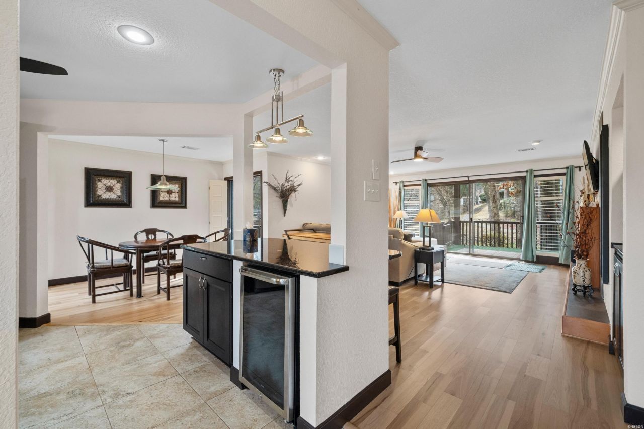 Surrounded by mature trees, this 2 bedroom 2 bath ground level condo offers a peaceful setting where you can relax on the back deck and listen to the gentle flow of the creek as it makes its way to the lake. The community is beautifully maintained with a park-like feel, providing a quiet escape from everyday life. Thoughtfully updated, this condo is truly move-in-ready and is being sold fully furnished.The open-concept living and dining area is filled with natural light, creating warm and inviting space for relaxing and entertaining. Both bedrooms are generously sized, with the primary suite featuring a private bath and serene lake views. Step outside and enjoy easy access to the water-perfect for morning coffee, sunset evenings, or enjoying all the recreational activities the lake has to offer. Whether your looking for a full-time residence or weekend getaway, this condo checks all the boxes. No nightly rentals allowed. Conveniently located near shopping, dining, and entertainment, this lakefront gem won't last long.Schedule your private showing today and experience waterfront condo living at its best!