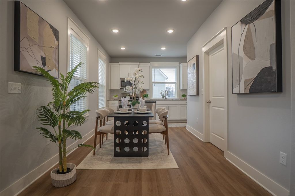 Make this beautiful and charming new home featuring a large covered front porch yours today! Upstairs bedrooms, each with its own bath, leaves first floor for family living and entertainment. Primary suite shower has a tile surround. Luxury vinyl plank flooring throughout. Green spaces, sidewalks and tree-lined streets for walking, allow neighborhood connections. Owner occupancy is required in this subdivision, however HOA will allow parents to purchase homes for their kids, or investors doing longer term (12 mo or more) rentals. Furnishings shown are for staging purposes only and are not included in the sale.