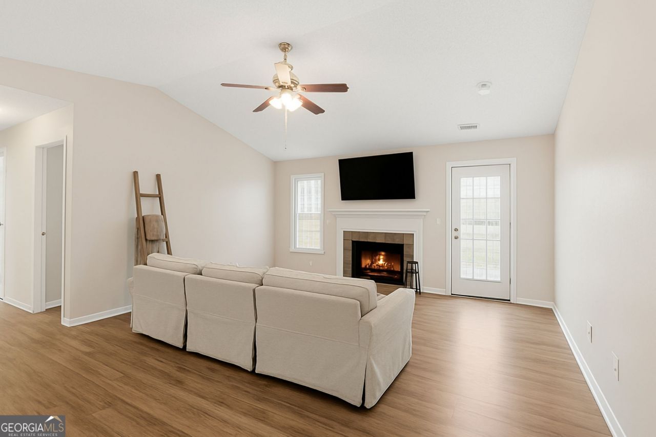 Welcome to this charming and inviting 3 bedroom, 2 bathroom ranch home, thoughtfully designed for both comfort and everyday living. Step inside to a spacious, open layout featuring a generous living area with a cozy fireplace-perfect for relaxing evenings or entertaining guests. The desirable split-bedroom floor plan offers added privacy, with the expansive primary suite tucked away on its own side of the home. Enjoy your own private retreat complete with double vanities, a separate shower, and a spa-like garden tub-ideal for unwinding at the end of the day. Outside, you'll find a large, private backyard offering endless possibilities for outdoor living, gardening, play, or peaceful relaxation. Conveniently located near major highways, shopping, and schools, this home provides easy access to everything you need while maintaining a quiet, residential feel. Don't miss the opportunity to make this warm and welcoming home yours-schedule your showing today!