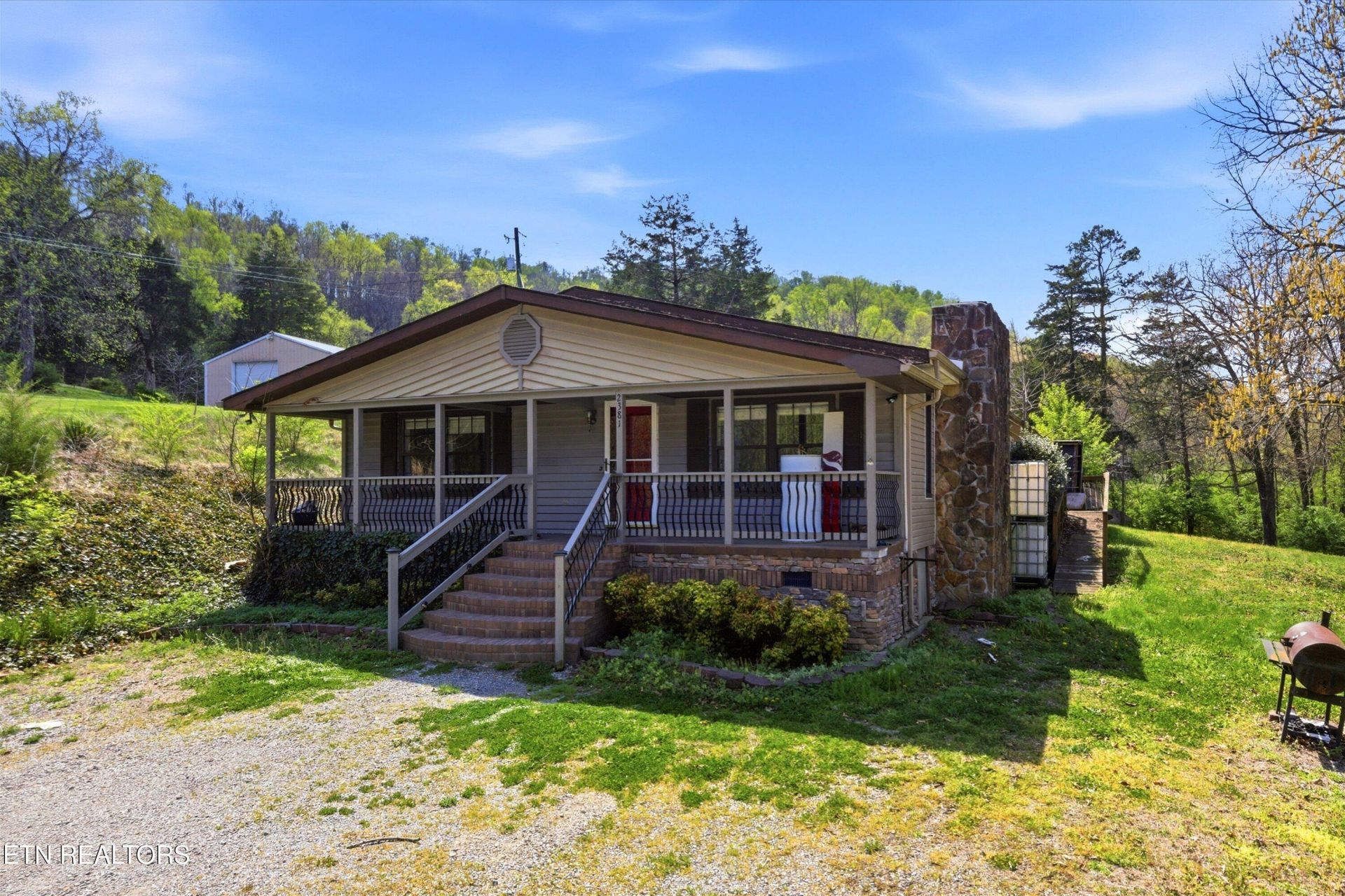 Spacious 5BR/3BA, one-level home on 1.42 acres in a peaceful, semi-private setting with room to spread out--inside and out. Offering over 2,700 sq ft, this property includes a detached 30x28 two-bay garage/workshop with side overhangs, additional outbuildings, and a firepit, providing excellent flexibility for hobbies, workspace, storage, or extra parking.The property features a mix of open yard and wooded privacy, with usable land for outdoor enjoyment, gardening, or future improvements. Agricultural zoning with no restrictions adds to the versatility. Aerial photos help illustrate the layout, setting, and overall potential.More recent updates including roof, HVAC, and water softener (all around 2019) have already been completed. Interior offers a large, flexible floor plan with multiple living areas and generous bedroom count.Sold as-is and priced to reflect condition, this home will require renovation and is best suited for investors, flippers, or buyers seeking a project with strong upside. Conveniently located near Copper Ridge Elementary and just minutes to I-75, Halls, and Powell shopping and dining, with county taxes only.Buyer to verify all information including square footage, acreage, and any details important to them.