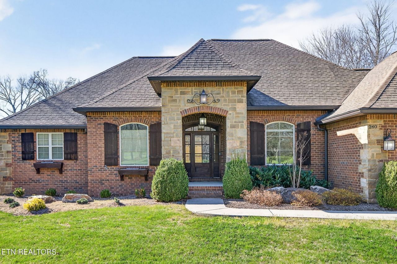 Welcome to your dream home on the 8th green of The Brae!This beautifully constructed Zurich-built home offers panoramic golf course views, quality finishes, and a layout designed for both comfort and style. Known in Fairfield Glade for luxury and quality construction, Zurich homes are highly regarded for their craftsmanship and lasting appeal. Amazing golf course setting with great views of the 8th green and tee box #9 Quality-built Zurich home, well known in Fairfield Glade for luxury construction and exceptional craftsmanship Attractive, low-maintenance exterior featuring a blend of brick, stone, and vinyl 10-foot ceilings and newer hardwood flooring throughout with tile in wet areas Open-concept floor plan connecting the foyer, living room, and dining room for easy everyday living and entertaining Elegant dining room with a double trey ceiling Inviting living room with a beautiful fireplace, striking mantle, and large windows that bring the outdoors in Well-appointed kitchen with:- ample cabinet space- granite countertops- apron-front farmhouse sink- stainless steel appliances- refrigerator- over-the-range microwave- newer 5-burner gas range with air fryer oven- dishwasher with stainless interior Charming breakfast nook with window seating and added storage Spacious family room with a double trey ceiling and access to the covered patio Outdoor living made easy with both a covered patio and open patio with retractable awning Private primary suite featuring:- roomy bedroom- walk-in closet with built-ins- luxurious bath with double granite vanityjetted tub- tiled walk-in shower with double niche and corner bench Guest bedroom placed for privacy with access to a stylish guest bath featuring a granite-top vanity and tub/shower combo with transom window Functional laundry room with extra cabinetry and utility sink Insulated garage door plus extra storage for added convenienceThis home offers the