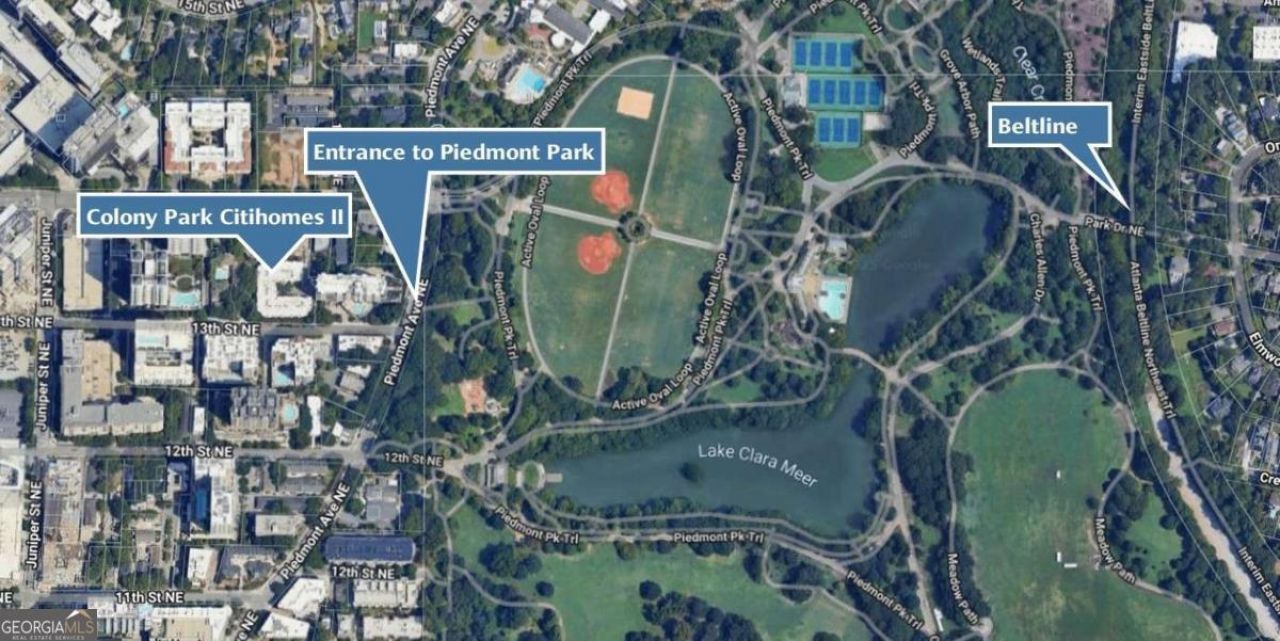 LOCATION LOCATION LOCATION!! THIS IS A TRUE GEM!! Fantastic FULLY FURNISHED 1 Bedroom/1 Bath condo in the heart of Midtown, JUST STEPS TO PIEDMONT PARK and walkable to the Beltline, High Museum, Colony Square, the Botanical Gardens, wonderful restaurants, and all that Midtown offers! This condo is in immaculate condition since it was used as a Pied a Terre just a few weeks a year...it's so cool, so retro! Literally just bring your toothbrush and move in! Everything else is included with the sale! (Some personal items to be removed...all furniture can be removed if desired.) Step into the classically decorated home that was designed to feel spacious. The Living Room features a gas log fireplace and a bar cabinet nook. The Kitchen has a gas range and features a breakfast bar that is open to the Living Room. The Bedroom is spacious and bright. The Bathroom is accessible from the Bedroom AND the Hallway and includes a spacious open closet and the laundry closet. Colony Park Citihomes II is an amazing and wonderfully maintained boutique condominium community with a proactive and healthy HOA and offers great amenities such as a salt water pool (pool area recently renovated), fitness center/gym, very spacious clubhouse and many more common areas. The Lobby area and Hallways were recently renovated and are beautiful! Also included is a deeded parking space within a gated parking area, a private storage unit, and a common bike storage room. The HOA fee includes all of the mentioned amenities PLUS High Speed Google Fiber Internet, Water, Sewer, Trash and maintenance of the common areas. BONUS: The elevator from the gated parking area provides a 'stepless' entry to the condo -- no stairs! This is a must see and is an opportunity that doesn't come along very often! Don't miss this gem!
