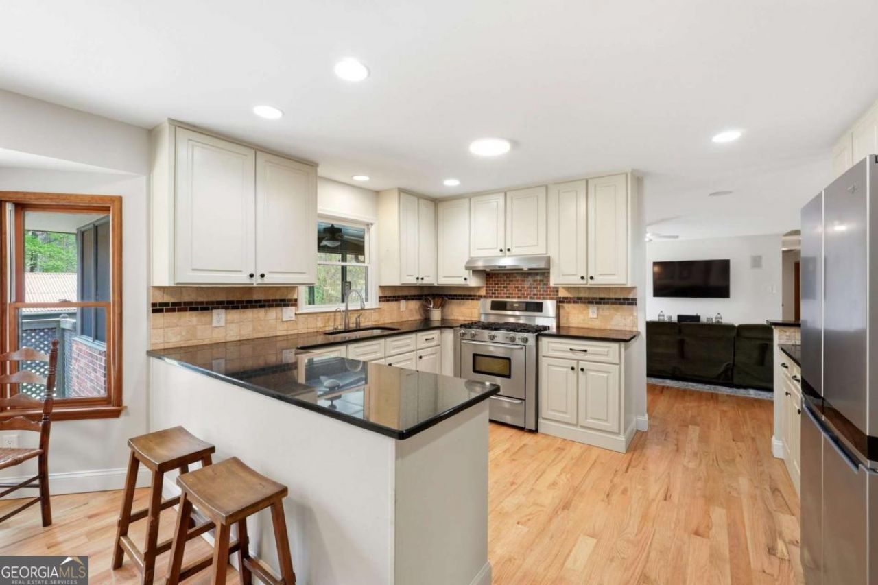 Tucked away on 5 private acres, this is the kind of property you don't just buy-you settle into. The winding trails, fenced land, and lush landscaping create a setting that feels worlds away, while the gunite saltwater pool (with new pump and salt cell), relaxing poolside cabana, and party deck set the stage for slow summer days and effortless entertaining. All the big deals are done-brand new roof (2025), brand new LVP flooring in the bedrooms, refinished solid oak flooring in main area, HVAC replaced in 2023. Inside, the home strikes that perfect balance-modern updates where you want them, character where it matters. A brick fireplace anchors the living space, the screen porch invites you to linger a little longer, and the oversized dining area with built-ins is made for gathering. The kitchen and breakfast nook are equally inviting, with granite countertops, a gas range, top of the line dishwasher and room to truly live in. The primary suite offers space to unwind, complete with a large tiled walk-in shower, while upstairs bedrooms provide comfort and privacy for family or guests. And then there's the lower level-fully finished and full of opportunity. A private in-law suite with its own entrance, kitchenette, and bath makes multi-generational living seamless. Add in a second living area, office with hardwired ethernet, storage room, a secondary garage with workshop, additional laundry hookup, and RV parking area... and you have a home that adapts to your life. There is even an additional 700+ sqft finished outbuilding with surround sound and projector which serves as a great home gym, media room, or guest space. Private. Functional. Designed for living well-both inside and out.