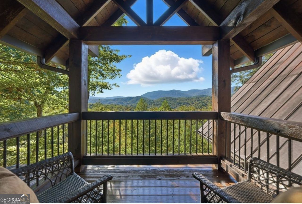 Experience the perfect blend of luxury, privacy, & breathtaking YEAR ROUND VIEWS in this stunning, PROFESSIONALLY FURNISHED, TURN KEY 3 BEDROOM/3.5 BATH custom-built Keith Sumner Mountain Retreat. Set on 3.2 acres of private mountain beauty, within a gated community, this home is just minutes from down Blue Ridge. This home offers it all-from ample parking & an oversized 2-car detached garage w/ large upstairs storage, to a striking exterior featuring stacked rock, wood, cedar shakes, board & batten, & a metal roof, all surrounded by METICULOUS LANDSCAPING. Enjoy an almost stepless entry leading to a covered rocking chair front porch w/ vaulted ceiling. Inside, the great room showcases a wall of windows capturing the views, circle sawn hardwood floors, a floor-to-ceiling rock gas log fireplace, & a cathedral ceiling designed to highlight the mountain backdrop. The kitchen is a showstopper w/ custom two-tone cabinetry, hardy stone counters, stacked rock & flagstone accents, & a unique covered bar area, flowing into a spacious dining area w/ modern lighting. Step outside to a dream outdoor living space w/ a wood-burning fireplace & plenty of room for relaxing or entertaining. The main level oversized master suite features stunning views, an ensuite bath w/ a flagstone shower and an actual rock waterfall to create a unique spa-like bath experience. Upstairs offers a second master suite w/ a private covered deck & an ensuite bath w/ a double vanity & oversized rock shower. The terrace level includes a wet bar, a large family/game room w/ a rock gas log fireplace, and a third oversized bedroom with a full bath. Outdoor living continues w/ a large covered deck featuring space for relaxing and a saltwater hot tub w/ massage jets, lighting & sound, an outdoor shower, & a large storage room w/ power, heat, and air, which has access from the deck. Previously a successful rental, this exceptional property offers the ideal blend of luxury, comfort, & investment potential.