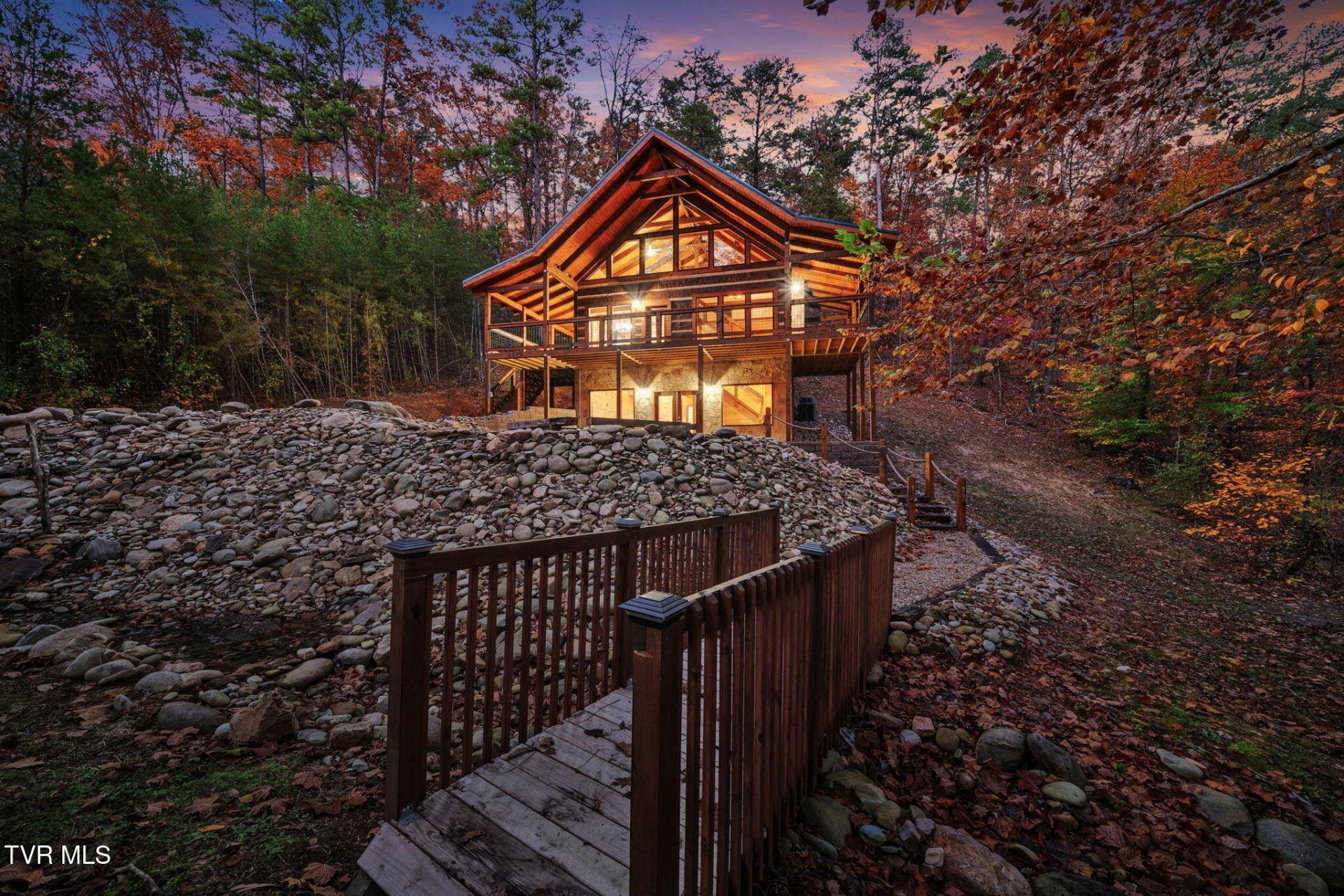 Welcome to Penny's Peaceful Pines, A FURNISHED LUXURY RETREAT! Positioned in the heart of the Great Smoky Mountains, this newly constructed (2025) true log cabin presents a rare opportunity to own a turnkey mountain retreat where refined design meets natural beauty. Crafted with intention, the residence offers two bedrooms (this includes a lofted suite overlooking the main living space), along with two and a half well-appointed bathrooms featuring a custom tiled shower. The finished lower level is designed for both entertainment and versatility, showcasing a dedicated game room complete with a pool table, poker table, arcade game, and comfortable lounge area--creating an ideal space for guests or additional living. The main level is defined by its soaring ceilings and open-concept design, anchored by a custom electric fireplace. The kitchen delivers both form and function with quartz surfaces, stainless steel appliances, and clean, modern finishes that complement the cabin's authentic log construction. Set on approximately 0.54 acres, the property is surrounded by the tranquility of the Smokies and enhanced by a spring-fed creek and dedicated outdoor fire pit area--offering an elevated outdoor experience that feels both private and immersive. In addition, the seller will install a hot tub prior to closing, with placement thoughtfully left to the buyer's preference. Additional features include a dedicated laundry and utility space, along with quality craftsmanship throughout. The home is being offered furnished, providing a seamless, turnkey transition. Strategically suited for short-term rental investment or a private second home, this property is well-positioned within one of the Southeast's most established vacation markets. Comparable properties in the area demonstrate strong income potential, with annual projections ranging from $60,000 to $90,000+, and top-performing homes exceeding $180,000. With peak seasonal demand approaching, this offering captures the essence of mountain living--proximity to outdoor recreation, established tourism, and the enduring appeal of the Smoky Mountains.A fully realized investment. A refined mountain escape. A rare, move-in ready opportunity. Buyer/buyers agent to verify all information.Please note: Elementary School - Pigeon Forge Elementary School | High School - Whites Adult
