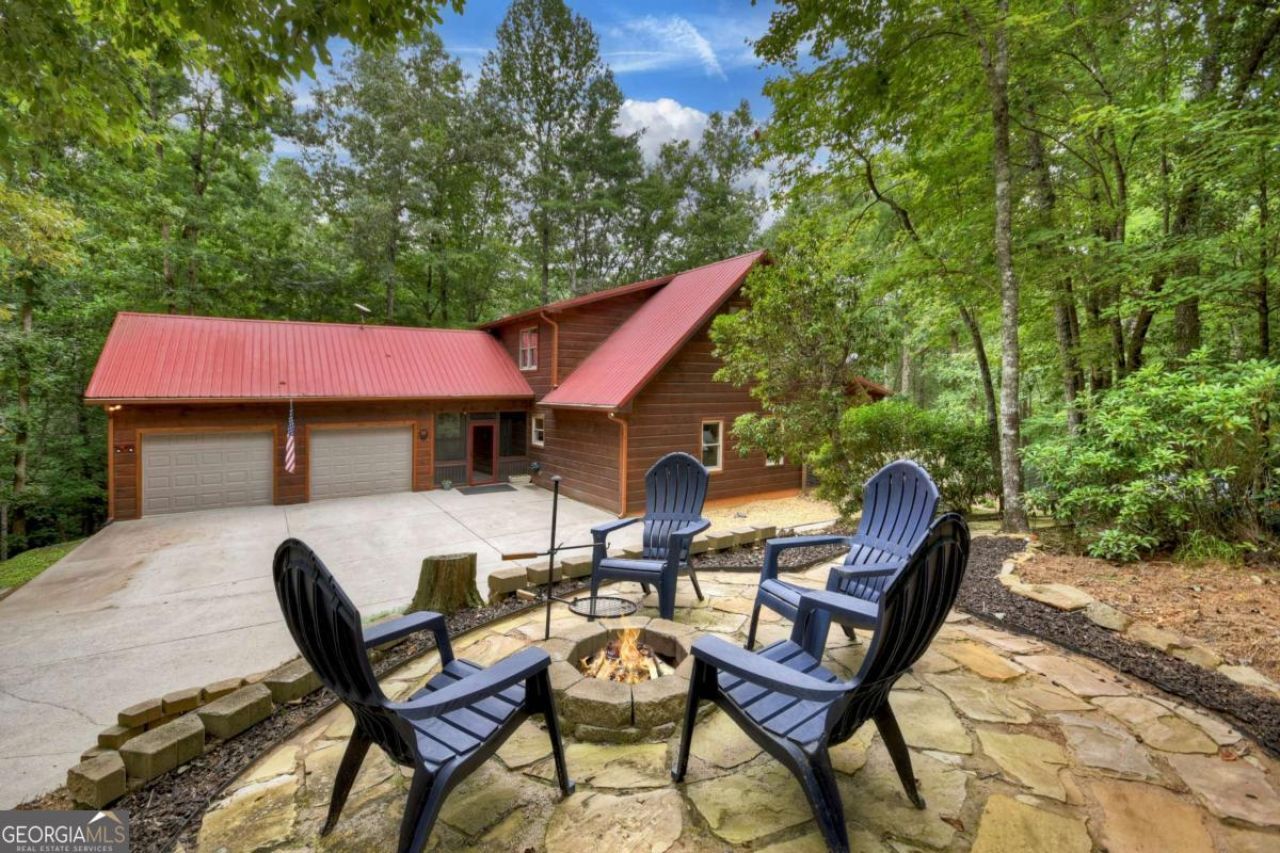 Discover refined mountain living on 1.55 private, unrestricted acres in Cherry Log. Spanning over 3,800 square feet, this impeccably maintained residence is a masterclass in timeless craftsmanship and elevated comfort, offering 4 bedrooms, 3.5 baths, and an effortless balance of grand entertaining and intimate retreat. A breathtaking great room makes an unforgettable first impression with soaring ceilings, a dramatic floor-to-ceiling stone fireplace, and rich wood accents that exude warmth and sophistication. The thoughtfully reimagined chef's kitchen showcases elegant quartz countertops, bespoke cabinetry, and soft-close detailing, flowing seamlessly into an inviting dining space designed for refined gatherings. The main level features two spacious bedroom suites, while the upper level offers two additional bedrooms, a full bath, a generous sleeping loft, and an expansive unfinished attic presenting exceptional potential for customization. The terrace level is a destination unto itself-featuring a cozy living area, custom-crafted bar, curated wine cellar, and a versatile library or game room ideal for a fifth bedroom, guest quarters, or private sanctuary. Outdoors, three screened-in patios provide a serene setting for year-round enjoyment, complemented by a fenced yard and a rare private zipline for a touch of adventure. With no HOA, high-speed fiber internet, a finished two-car garage, a whole-house generator, and a brand new HVAC system installed in March 2026, every element has been thoughtfully designed for both luxury and ease. Ideally positioned just minutes from Blue Ridge and the pristine Toccoa River, this extraordinary property offers seamless access to fine dining, boutique shopping, acclaimed wineries, and endless outdoor pursuits-delivering the very best of North Georgia mountain living.