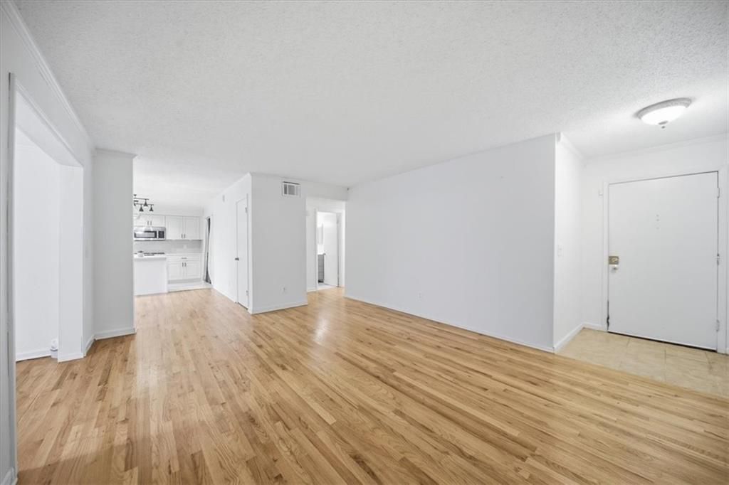 This beautifully renovated 2-bedroom, 2-bath lower-level condominium offers easy access with minimal steps and seamless entry to the outdoors?perfect for everyday convenience and effortless living. Inside, the open-concept layout showcases a stunning kitchen featuring quartz countertops with a waterfall edge, stainless steel appliances, and generous prep space. Real hardwood floors run throughout the main living areas, adding warmth and continuity. The sunroom provides a peaceful retreat with wooded views, creating the perfect spot for morning coffee or a quiet workspace. Both bedrooms offer ample closet space, while the two renovated bathrooms feature new tile flooring, updated vanities with quartz countertops, and modern lighting. Cross Creek's resort-style amenities include a gated entrance, 18-hole executive golf course, three swimming pools, four tennis courts, pickleball, a restaurant and bar, fitness center (optional membership), and over two miles of walkable streets within the community. Ideally located on a quiet, dead-end street in Buckhead, this home offers quick access to the airport, Vinings, Midtown, Downtown, GA-75, GA-85, GA-400, and popular destinations like Westside Provisions District?making it as convenient as it is charming.