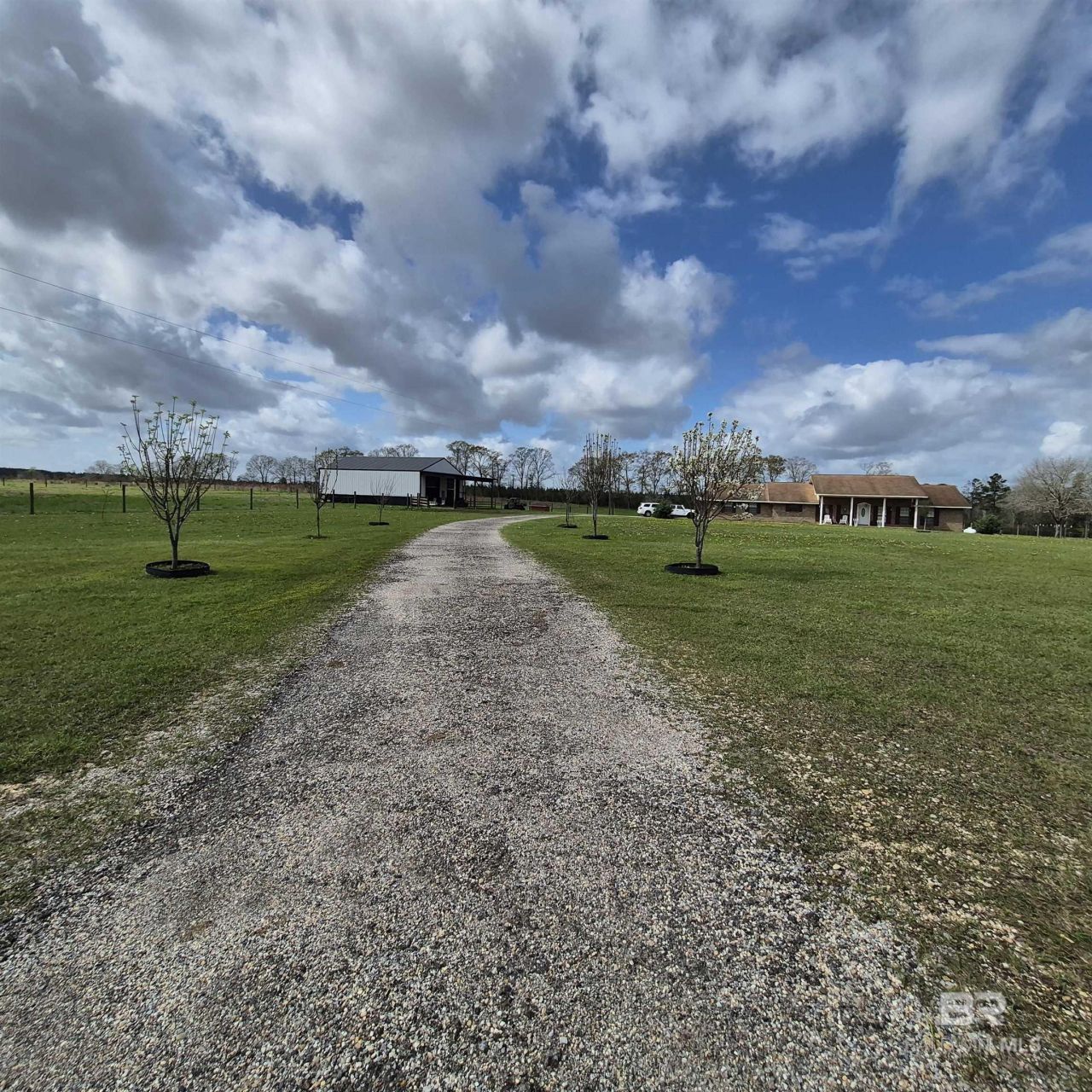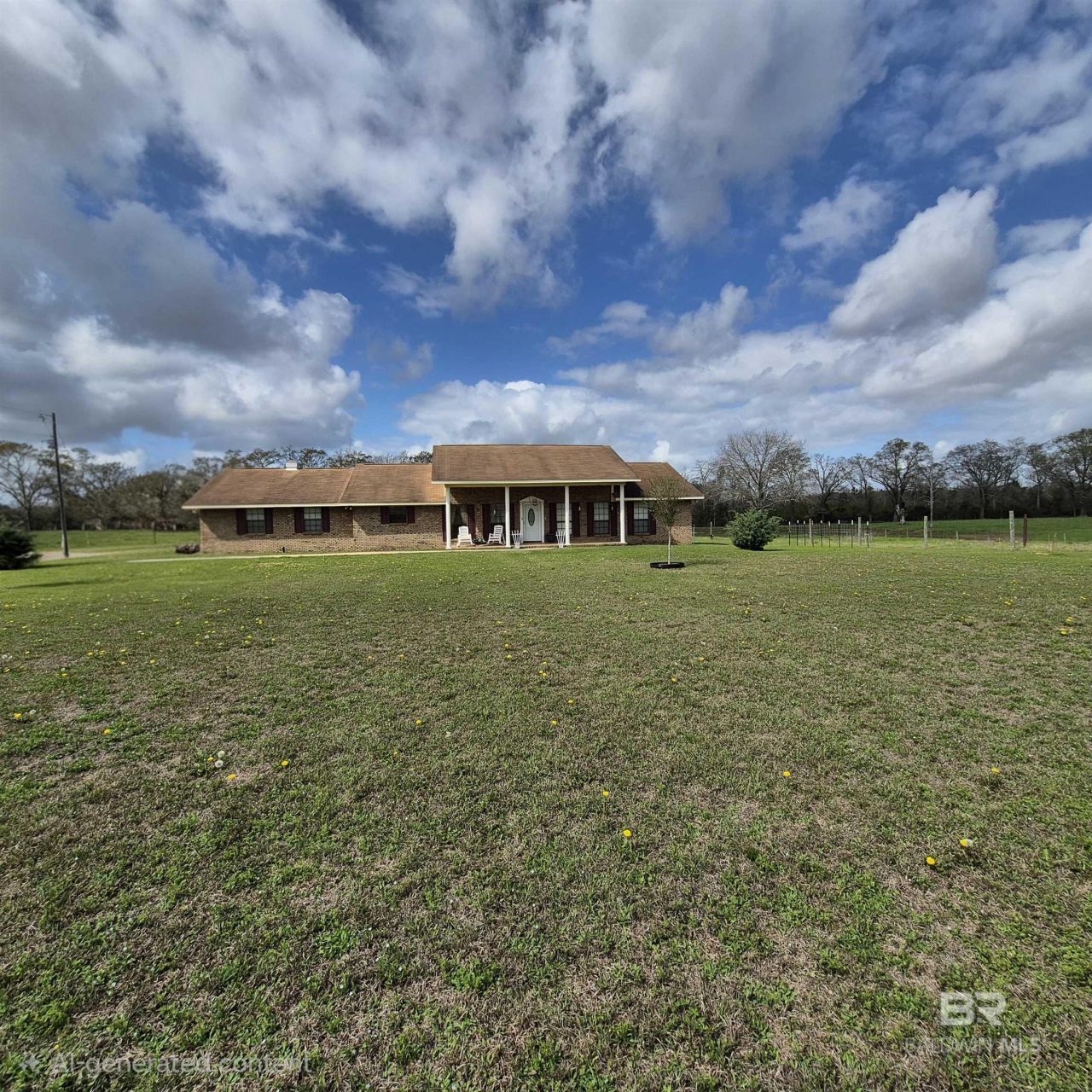 HOME, STOCKED POND, POLE BARN, BARN & MULTIPLE OUTBUILDINGS! Located on just over 9 acres, 26635 Highway 41 in Range, Alabama offers land, multiple structures, with convenient access to I-65. This 4-bedroom, 3-bath home features a spacious kitchen with a breakfast bar that opens into the living room, creating a comfortable and functional layout. A dining room located just off the kitchen includes a chandelier and built-in china cabinet, while the living room features a stone fireplace with gas logs. The primary bedroom includes large windows that provide natural light and an ensuite bathroom with a large vanity with seating and a low-entry shower. Three additional bedrooms offer ample space and closet storage. The home also includes a welcoming foyer, a front porch overlooking the property, plus a spacious laundry room.The two-car garage has been designed as a charming space that also serves as an additional covered porch area, complete with attractive flooring and an extra full bathroom for added convenience .Outdoor features add even more versatility to the property, including a stocked pond, two deep wells, county water availability, apple, plum, and pear trees, plus a fenced pasture area. A 40x50 pole barn built in 2025 with electricity provides excellent space for equipment, projects, or storage. An additional detached building features a kitchen and fireplace, providing flexible space for a variety of uses. The property also includes another barn and storage building for equipment or additional storage needs. An oversized paved parking pad with power, water, and sewer connections for an RV adds additional functionality. There are so cameras with a monitored security system. With land, multiple buildings, and a variety of outdoor features, 26635 Highway 41 offers a unique combination of space and versatility. Buyer to verify all information during due diligence.
