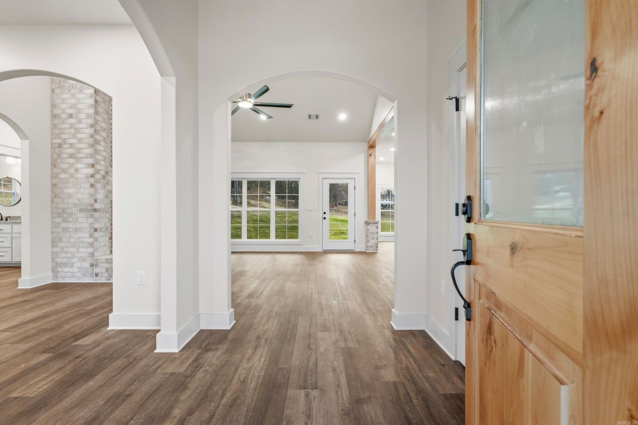 Brand new construction on 1.53 acres with Lake Hamilton access, directly across from the neighborhood boat ramp! This beautiful home features arched doorways, vaulted ceilings, and an open floorpan perfect for entertaining. The kitchen is a chef's dream with 36" gas stove, custom cabinetry, and ample counter space. Includes a large laundry room, butler's pantry, and extra storage room in the garage. Upstairs offers a spacious bonus room with a reading nook and full bath. Brick and board and batten exterior complete this stunning home! Call today!